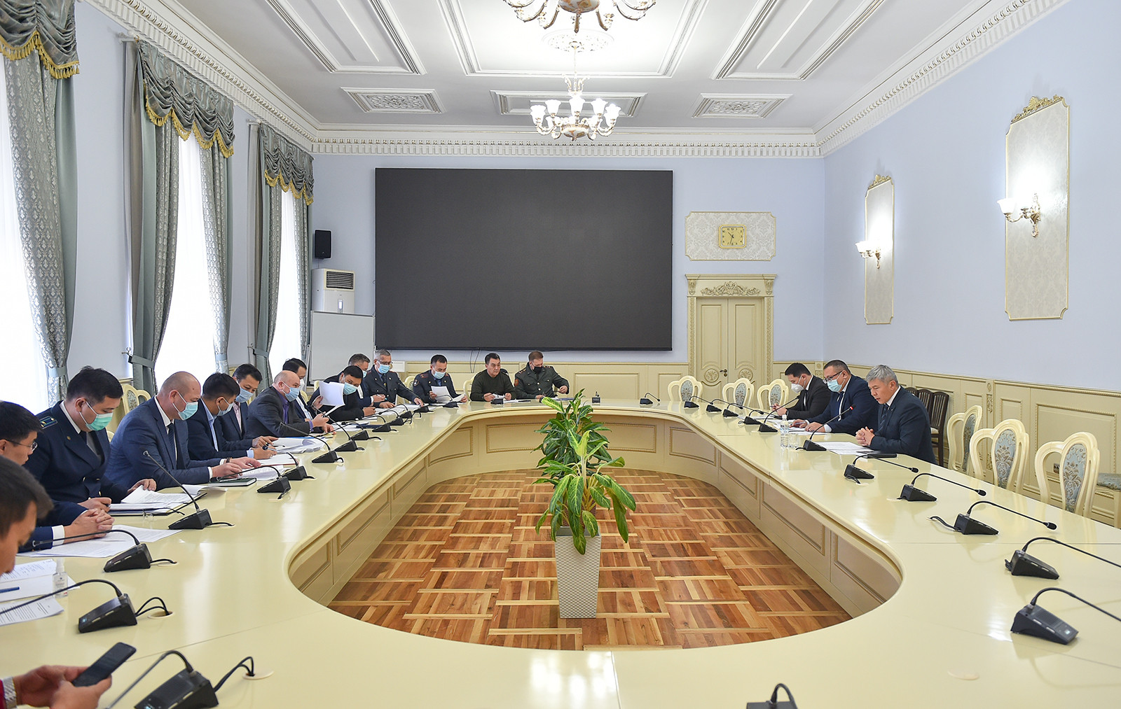 Андан соң жыйындын күн тартибине ылайык, укук коргоо органдарынын ишиндеги актуалдуу көйгөйлөр жана кемчиликтер, аларды чечүүнүн мүмкүн болгон жолдору талкууланды.