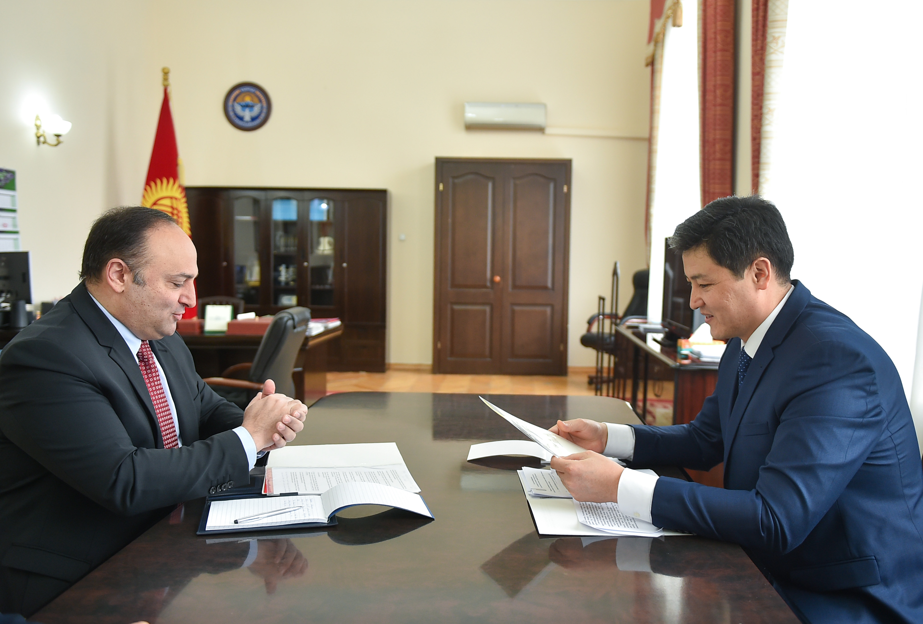 Премьер-министр Кыргызской Республики Улукбек Марипов принял Чрезвычайного и Полномочного Посла Турецкой Республики в Кыргызской Республике Дженгиза Камила Фырата по случаю завершения его дипломатической миссии в стране.