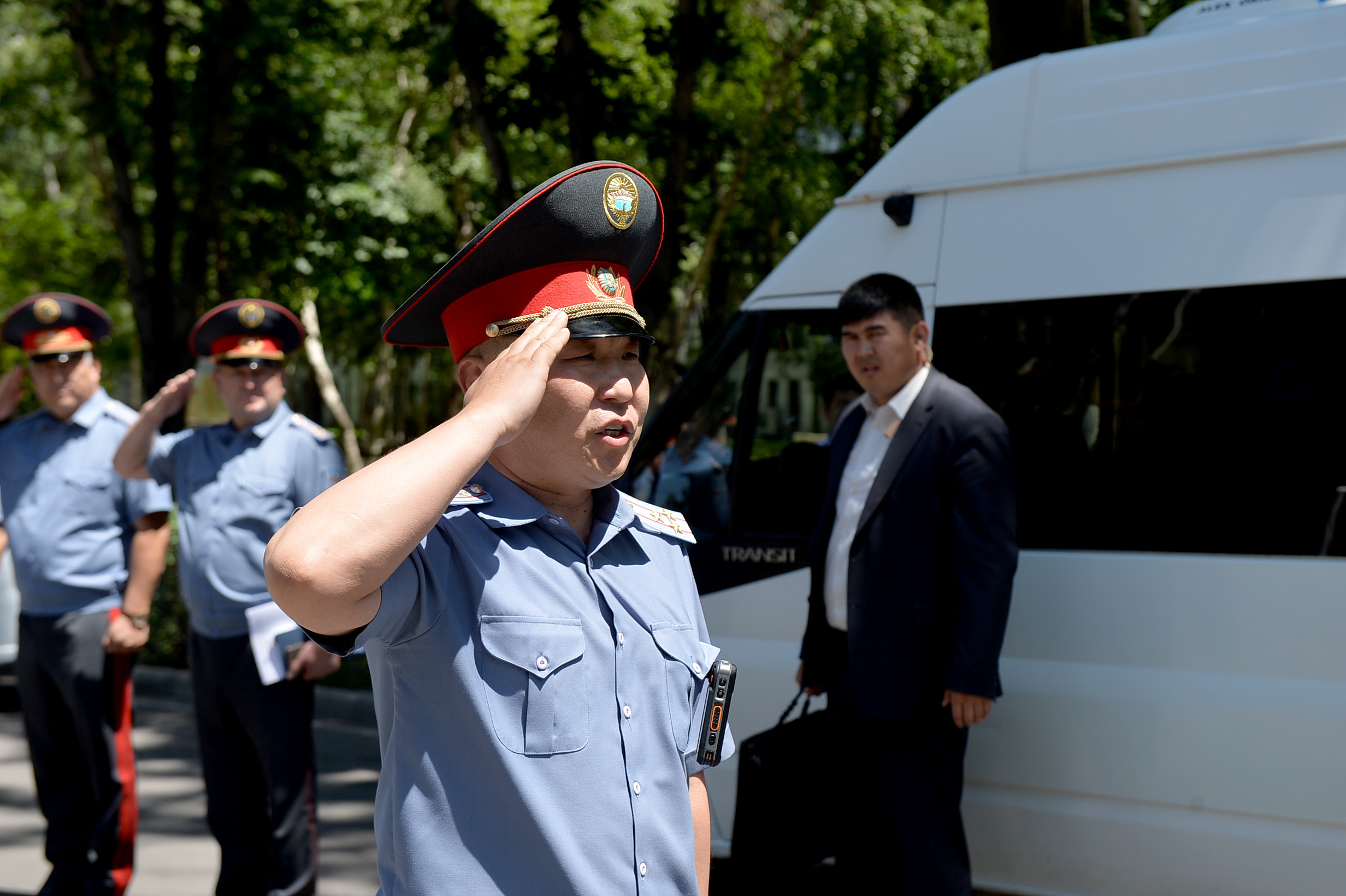 Главе Кабмина также рассказали о том, как в рабочих целях используются служебные планшеты и персональные камеры, которыми снабжены участковые милиционеры в городе Бишкеке и в регионах республики.