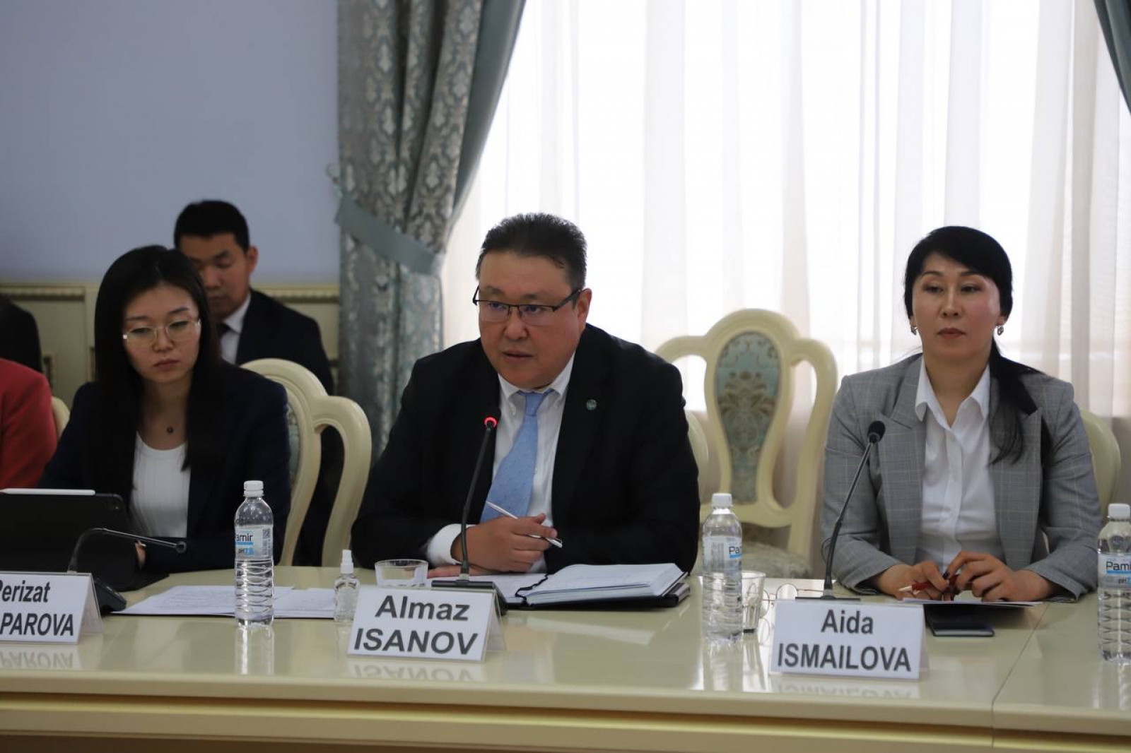 Начальник управления политических и экономических исследований Администрации Президента Кыргызской Республики Алмаз Исанов встретился с представителями делегации Республики Корея, прибывшей в Кыргызстан для подписания соглашения по созданию совместного провайдера торговых услуг.