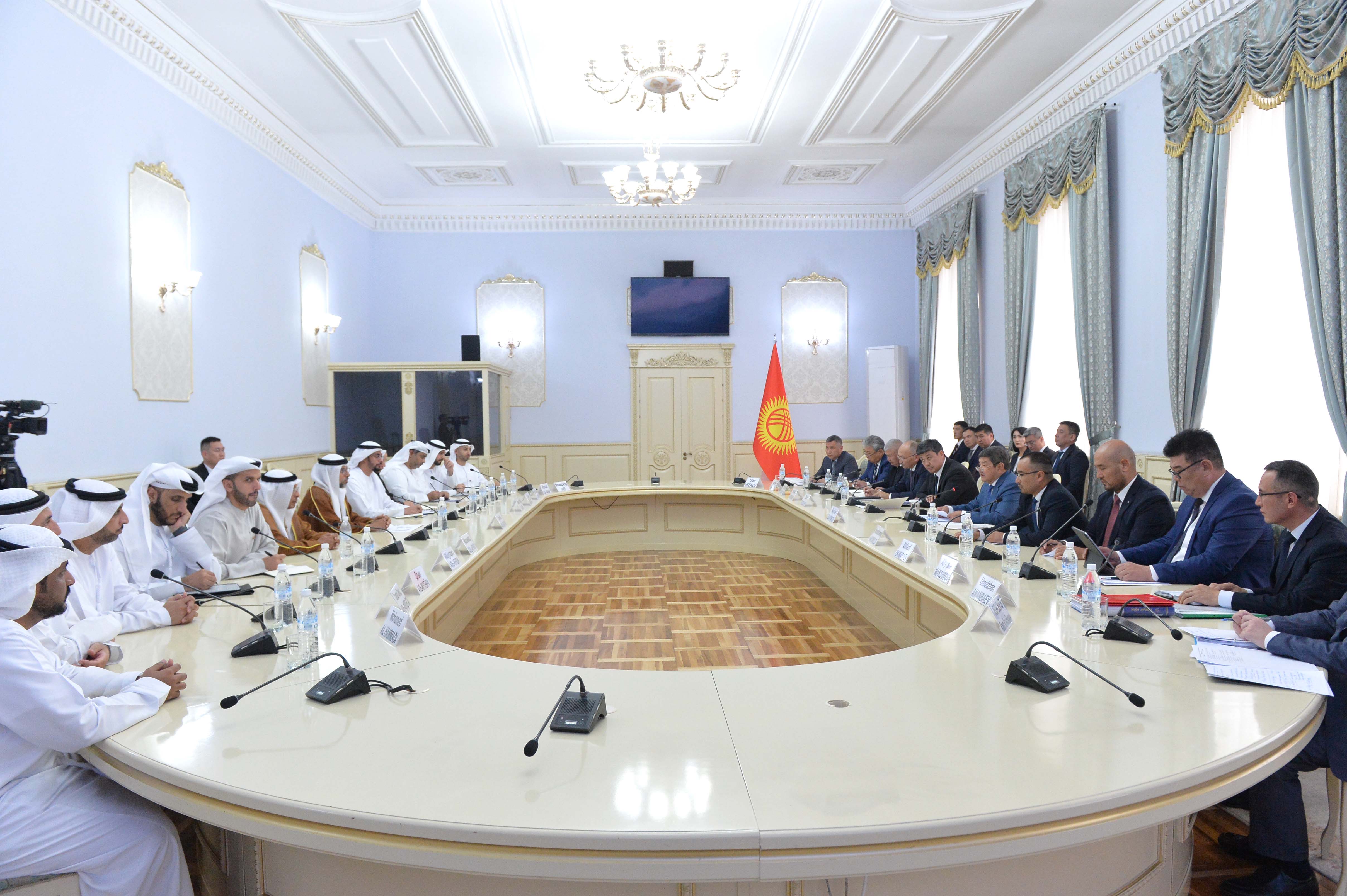 Открывая встречу, Глава Кабмина поприветствовал делегацию ОАЭ в составе представителей ряда министерств и ведомств, прибывшую в Кыргызстан в целях практической реализации договоренностей, достигнутых на высшем уровне.