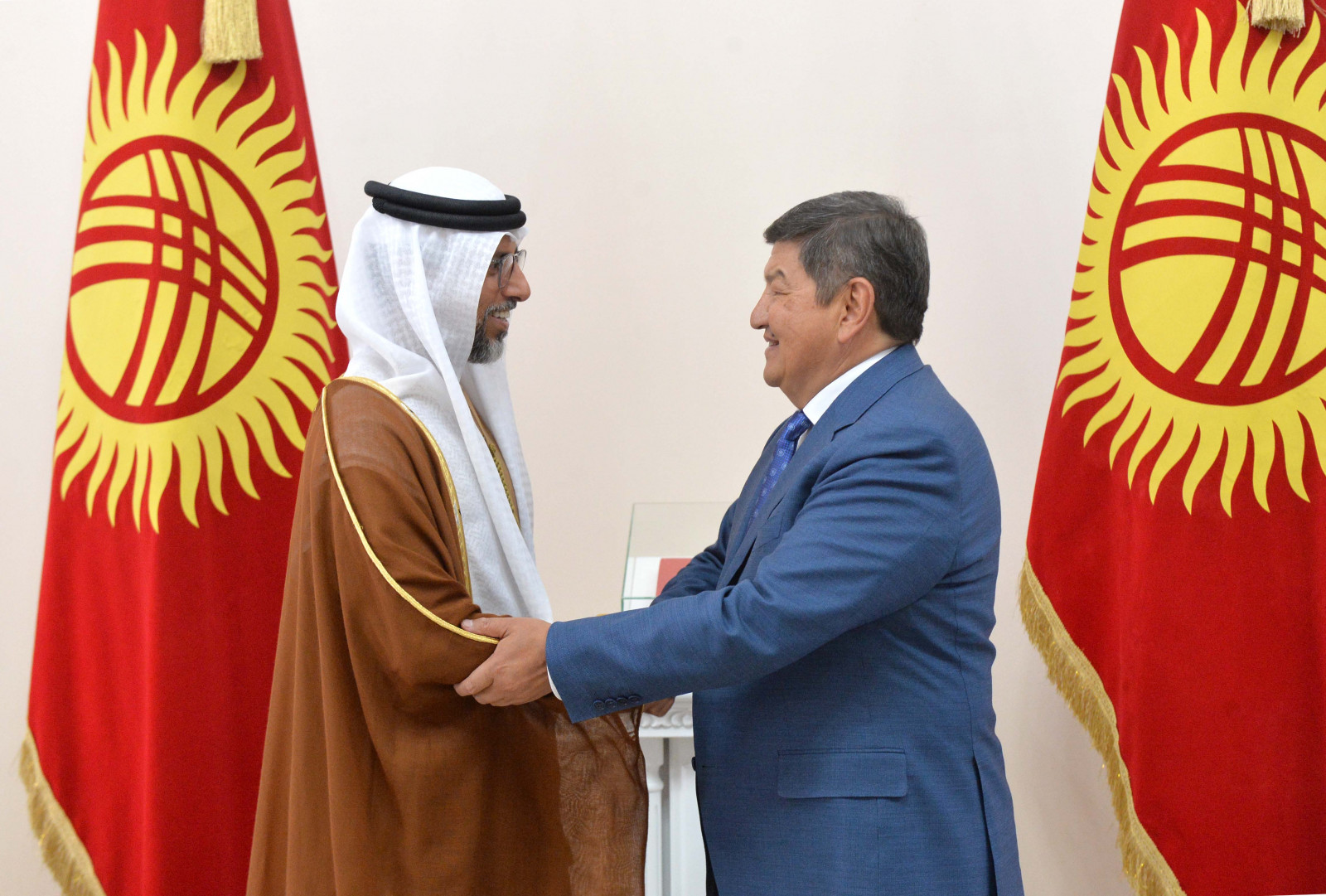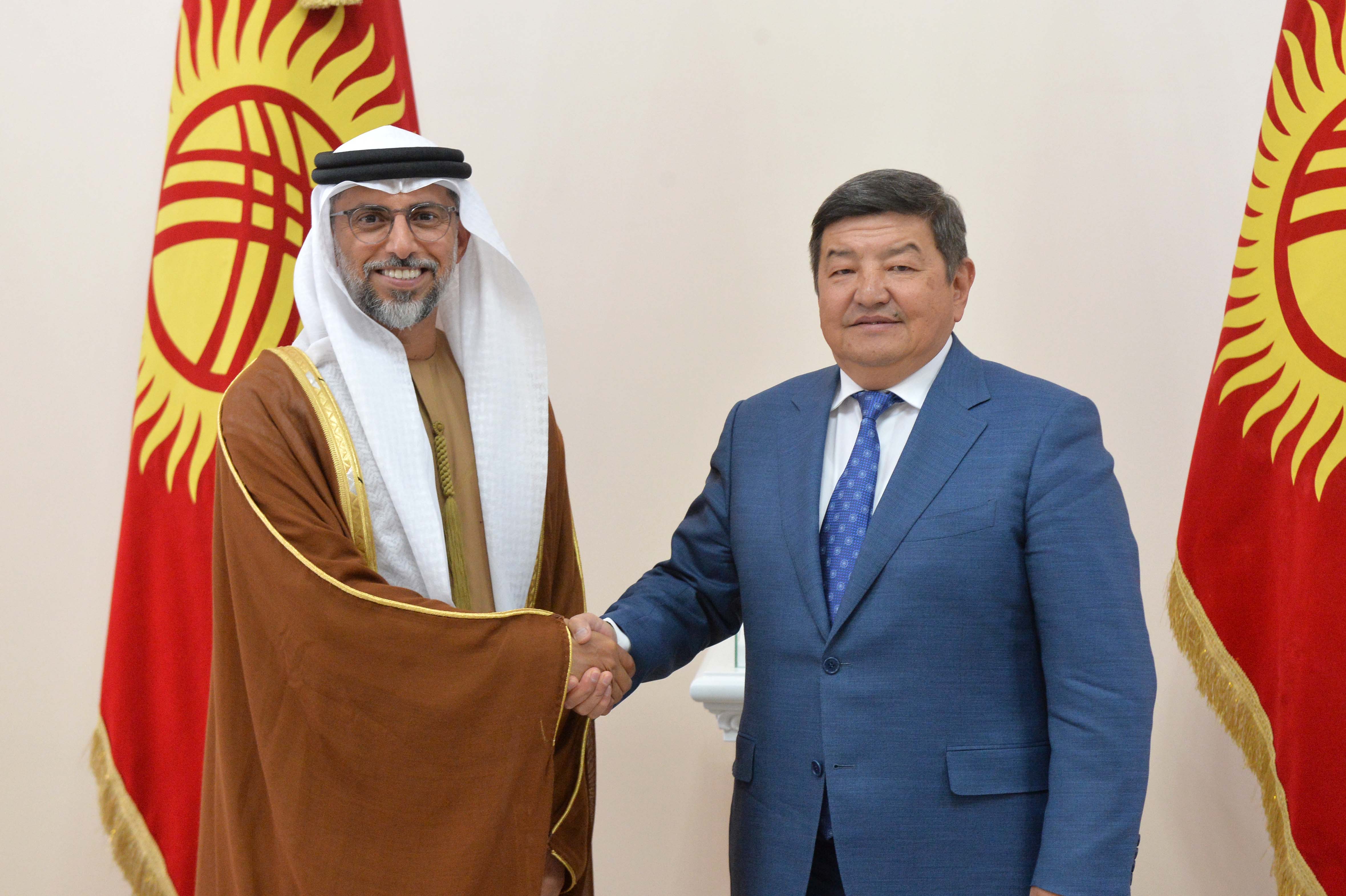Председатель Кабинета Министров Кыргызской Республики-Руководитель Администрации Кыргызской Республики Акылбек Жапаров встретился с Министром энергетики и инфраструктуры Объединённых Арабских Эмират – Специальным представителем Министерства иностранных дел Объединённых Арабских Эмират по вопросам сотрудничества Объединённых Арабских Эмират (ОАЭ) с Кыргызской Республикой Сухэйлом Аль-Мазруи.