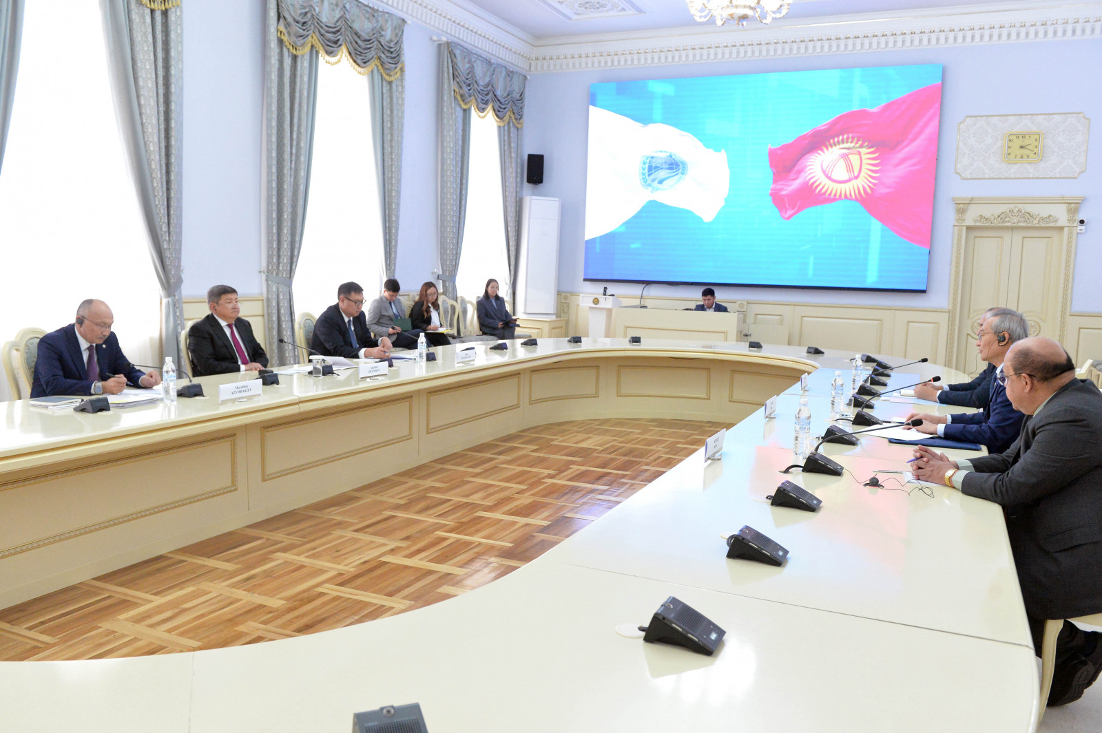 В завершение встречи, стороны обсудили организационные моменты и содержательную часть предстоящего заседания Совета глав правительств ШОС, которое пройдет 26 октября в городе Бишкеке.