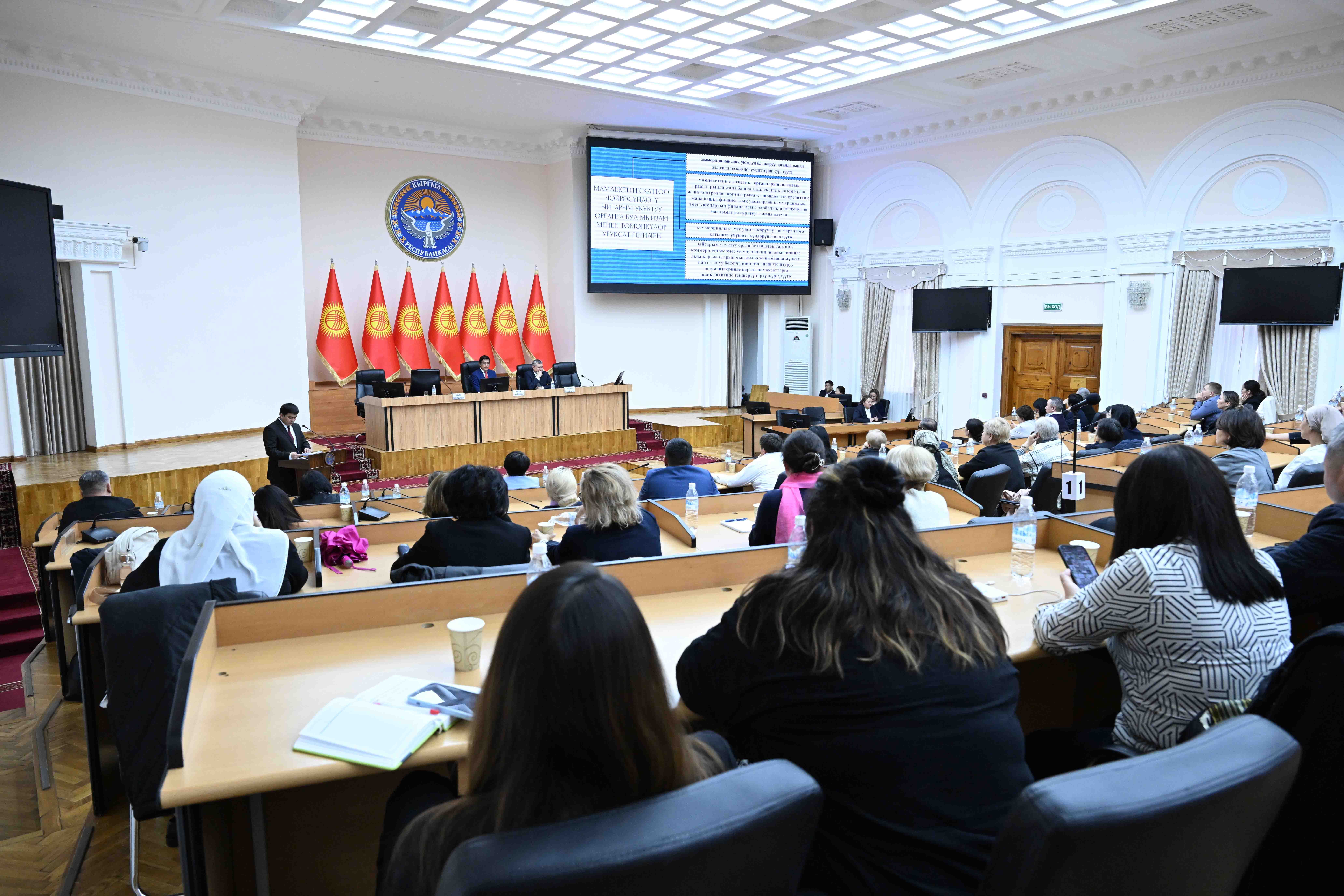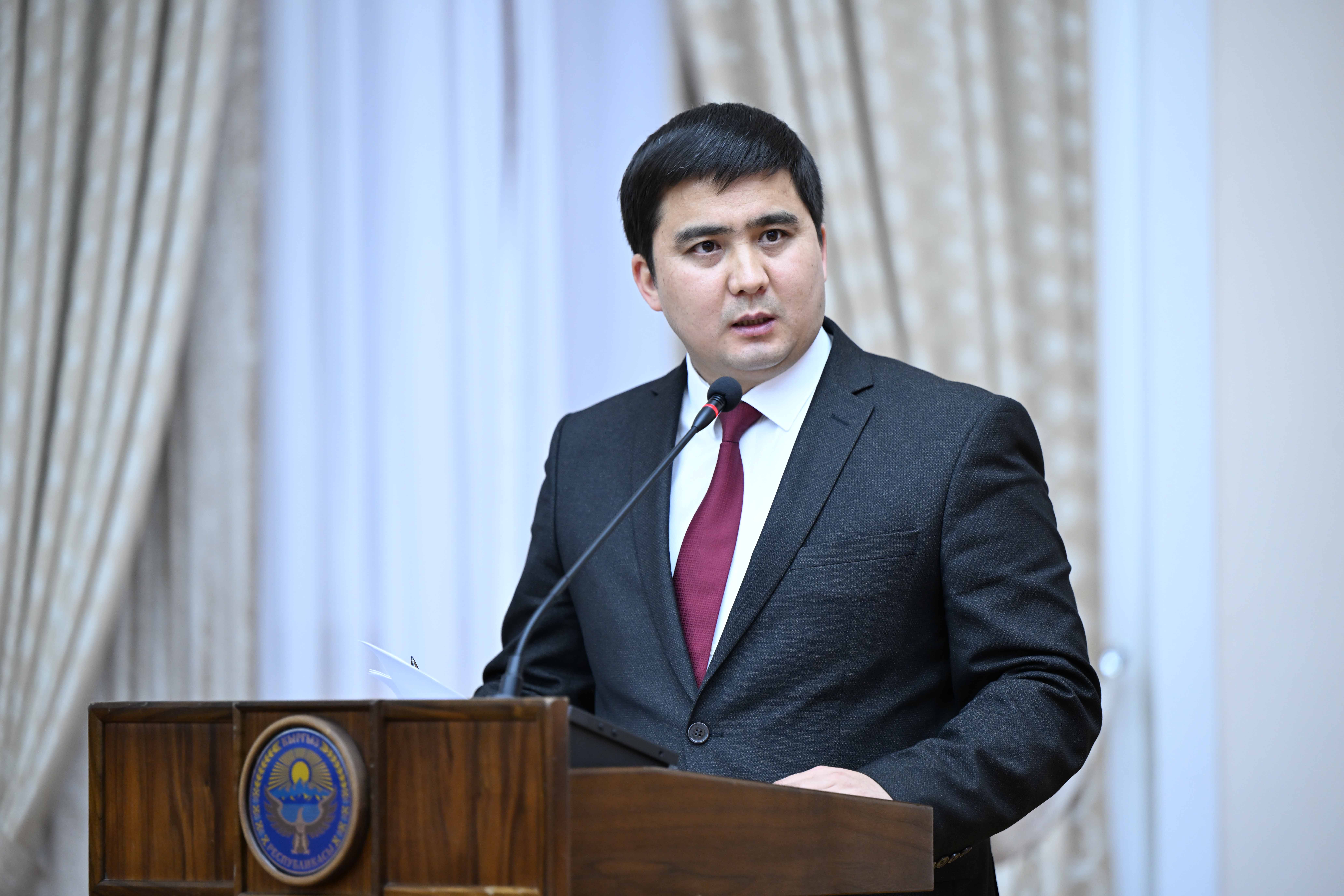 Заместитель министра юстиции Орозбек Сыдыков представил презентацию о Законе.