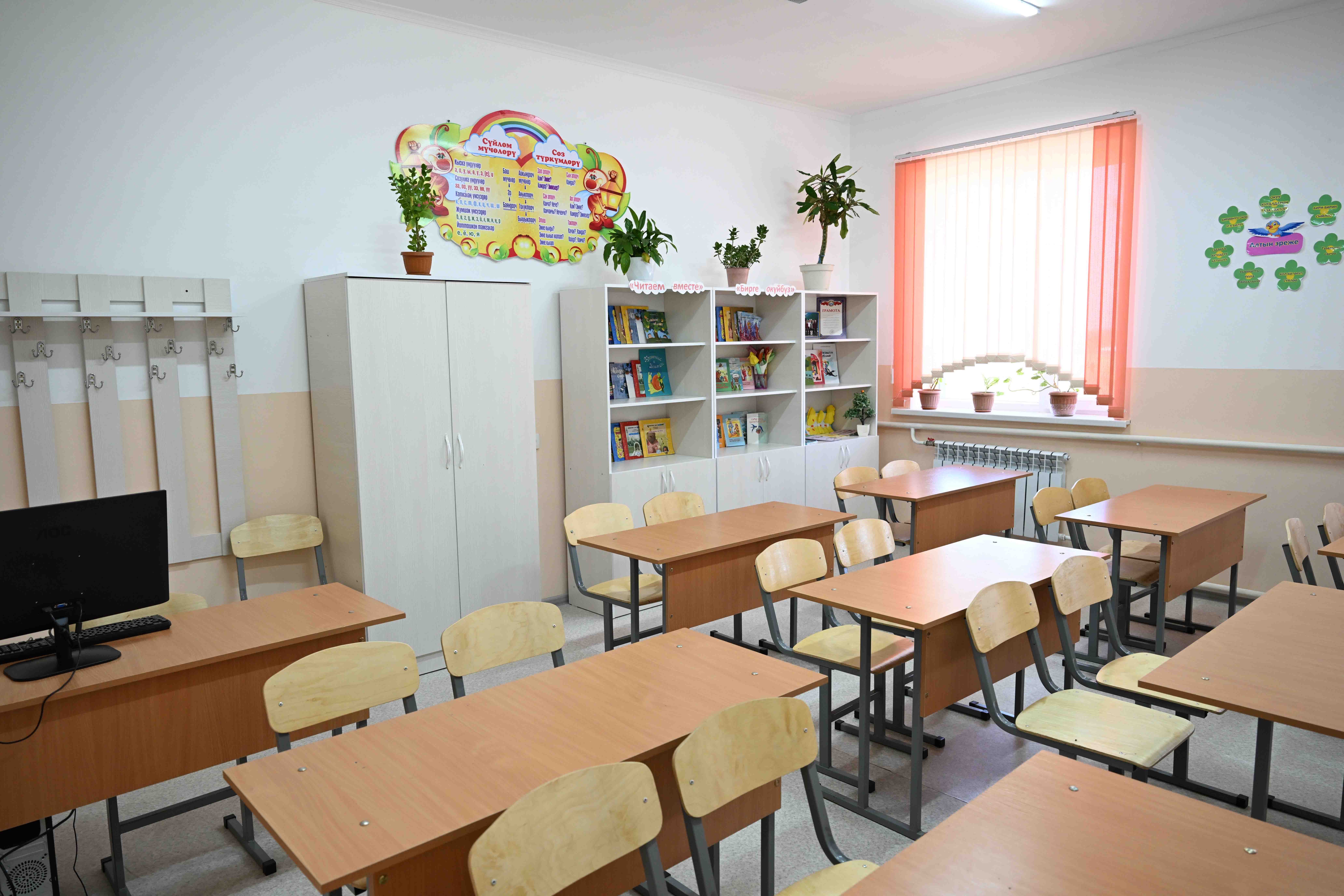 Далее Акылбек Жапаров посетил начальную школу в селе Боз-Бармак. Школа рассчитана на 90 мест.