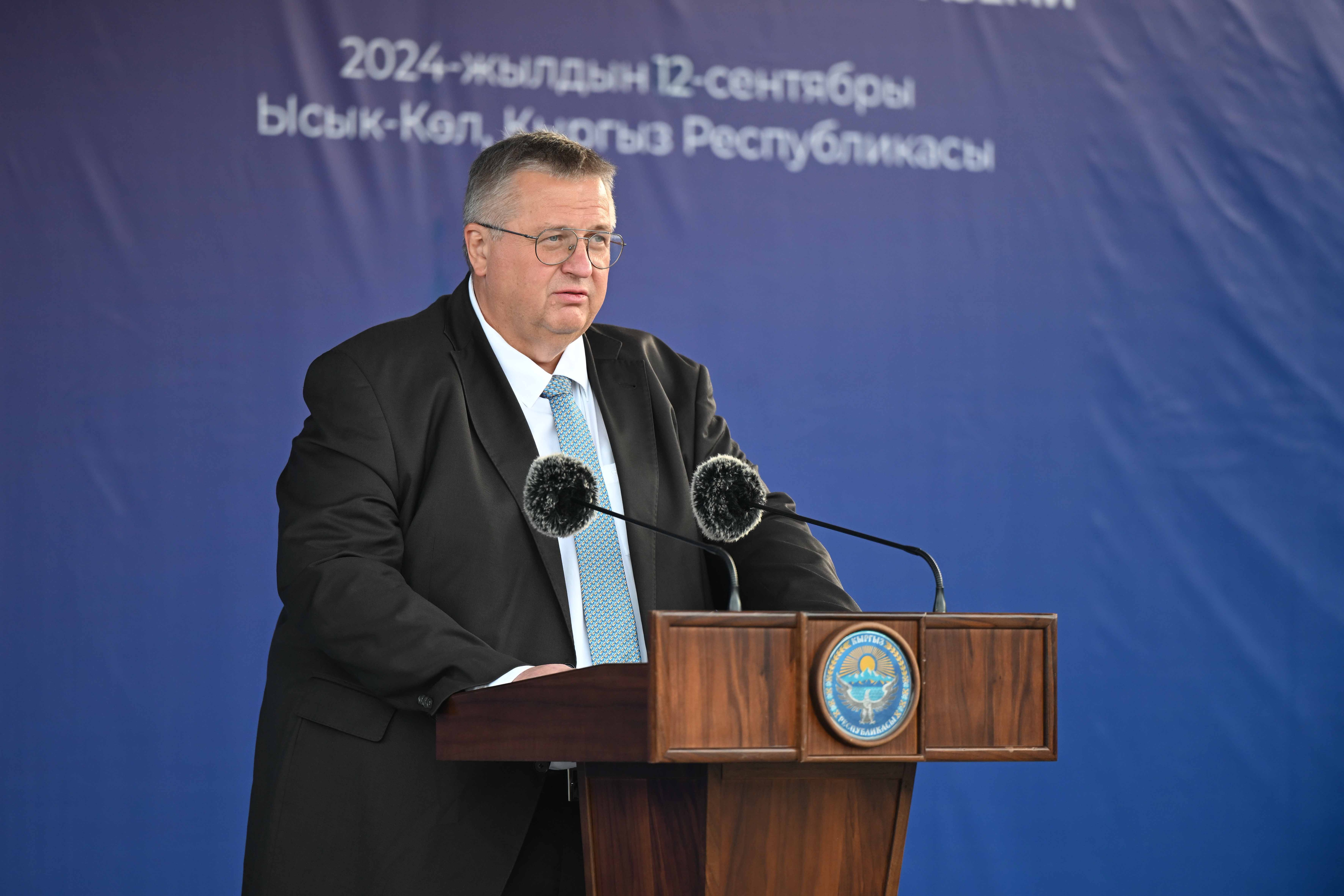 «Президент Кыргызской Республики Садыр Нургожоевич, выступая с высокой трибуны ООН на саммите лидеров по вопросам изменения климата, возобновляемых источников энергии, сокращения выбросов парниковых газов, по зеленой экономике выдвинул серьезные инициативы. Тогда многим это казалось мечтой, неподкрепленной необходимыми ресурсами. Однако вопреки всем скептикам сегодня мы на практике начали реализовать эти инициативы. Таким образом, мы приступили к реализации одной из задач Организации Объединенных Наций по достижению целей в области устойчивого развития. Хотя Кыргызская Республика входит в число регионов с наибольшим потенциалом возобновляемых источников энергии, мы не использовали в своем потреблении энергию ветра, солнечную энергию и энергию биогазовых технологий. У нас более 300 солнечных дней в году, а сила здешнего ветра отражена в народных легендах. Сейчас мы с вами являемся свидетелями начала строительства ветряной электростанции мощностью 100 мегаватт в селе Кок-Мойнок на берегу озера Иссык-Куль», - сказал в своей речи Акылбек Жапаров, отметив высокие ожидания от проекта и выразив уверенность, что компания применит современные технологии и оборудование, а также активно привлечет местный рабочий персонал, что будет способствовать созданию новых рабочих мест и пополнению местного бюджета как на стадии сооружения, так и на стадии эксплуатации объекта.