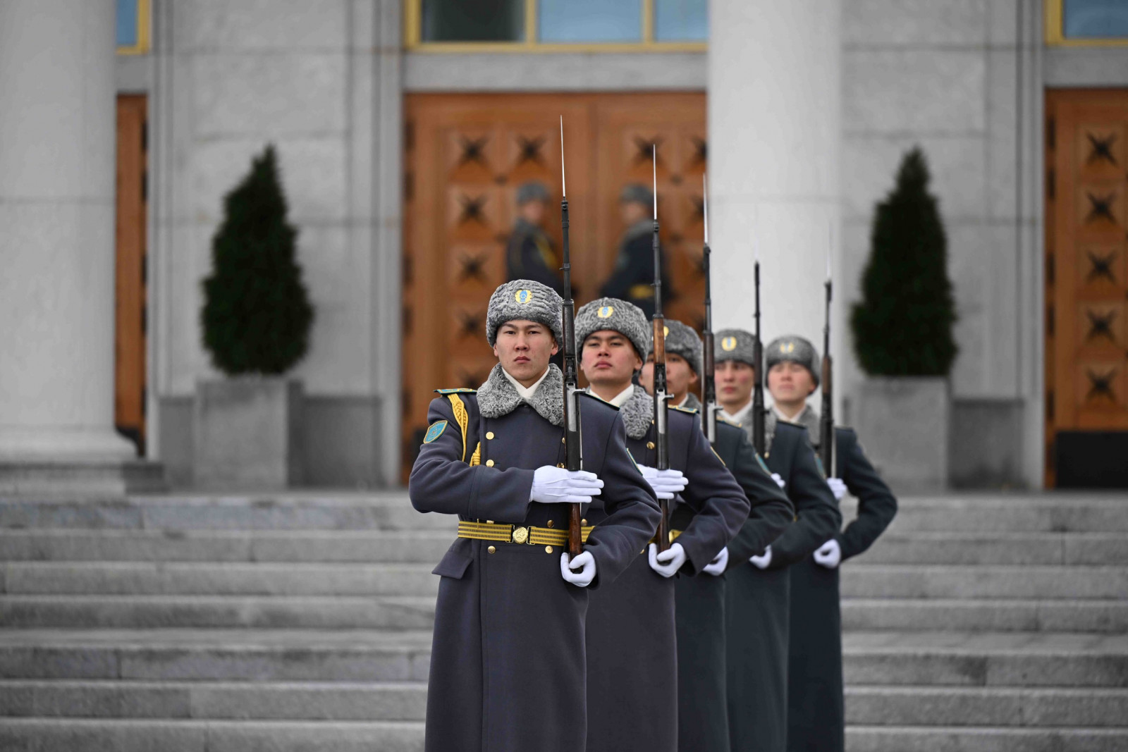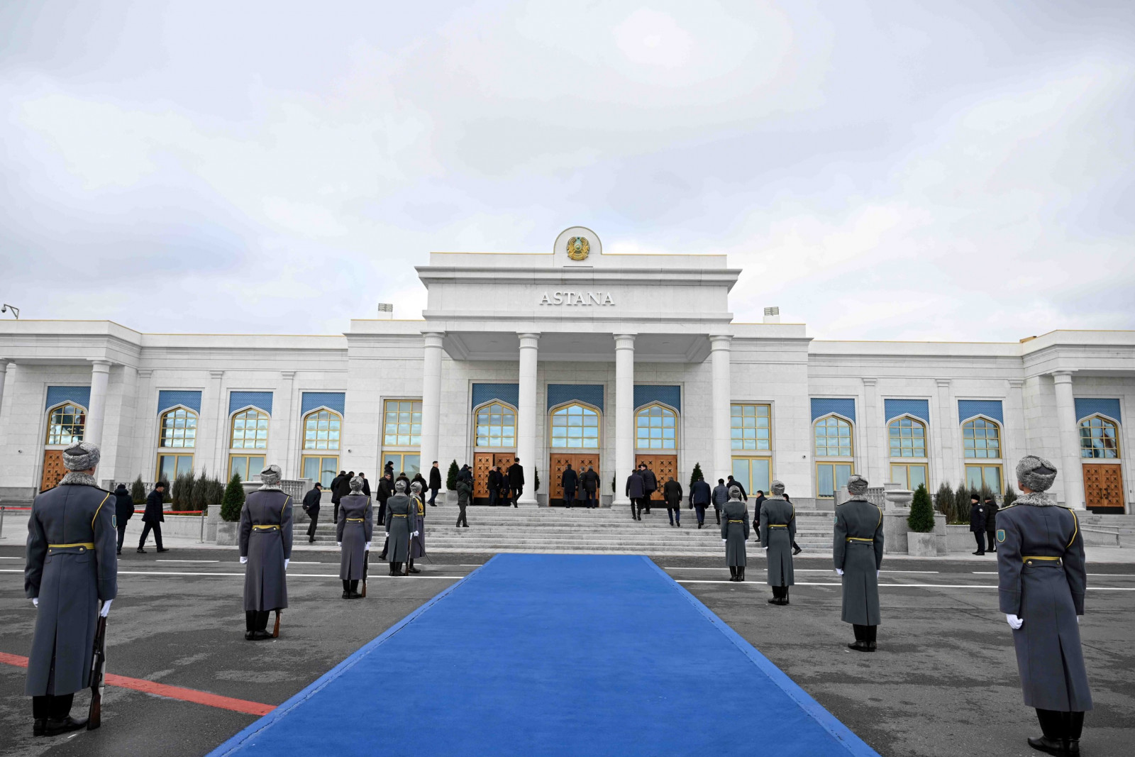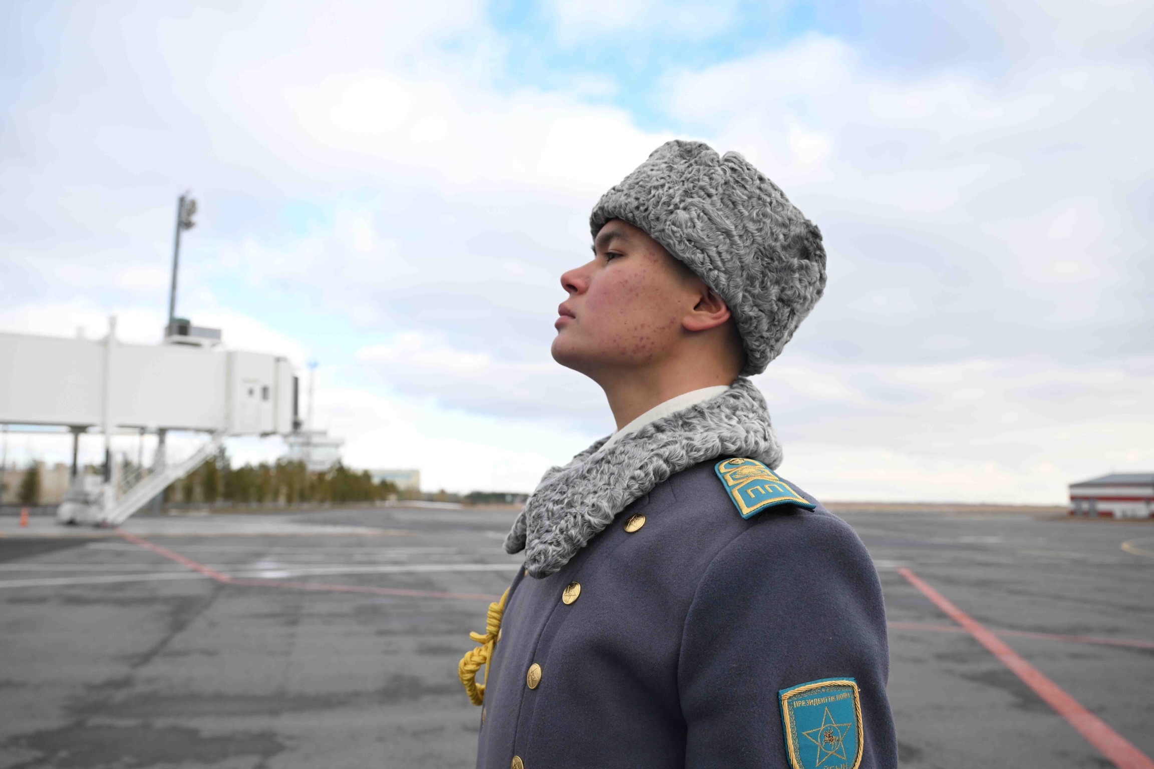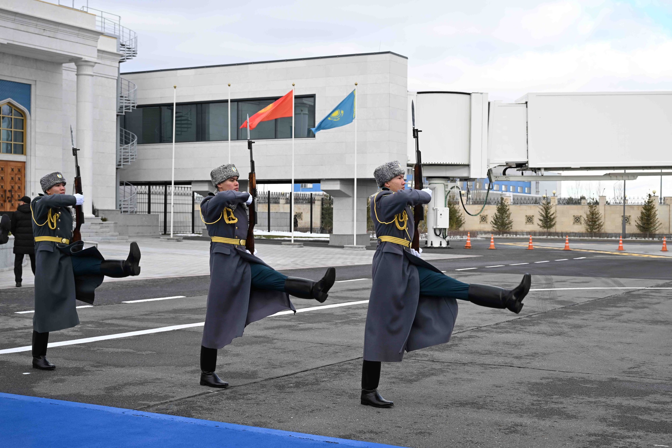 На флагштоках аэропорта вывешены государственные флаги двух стран, выстроена Рота почётного караула.