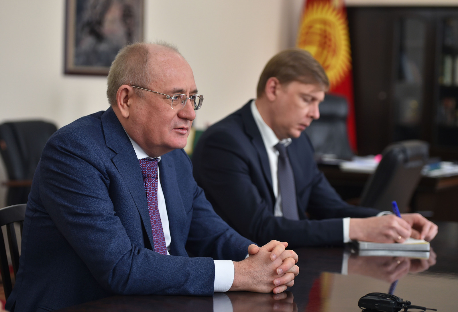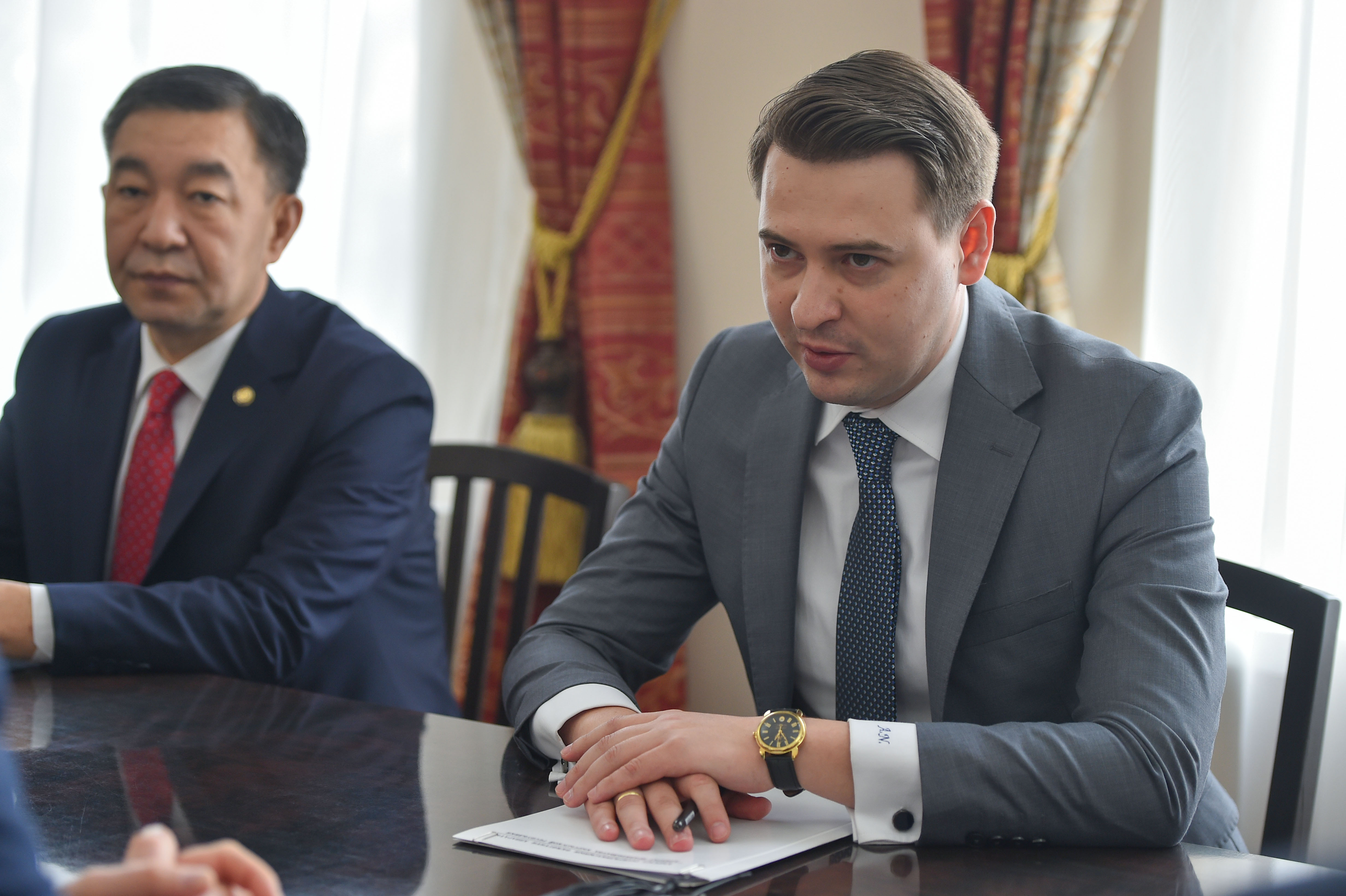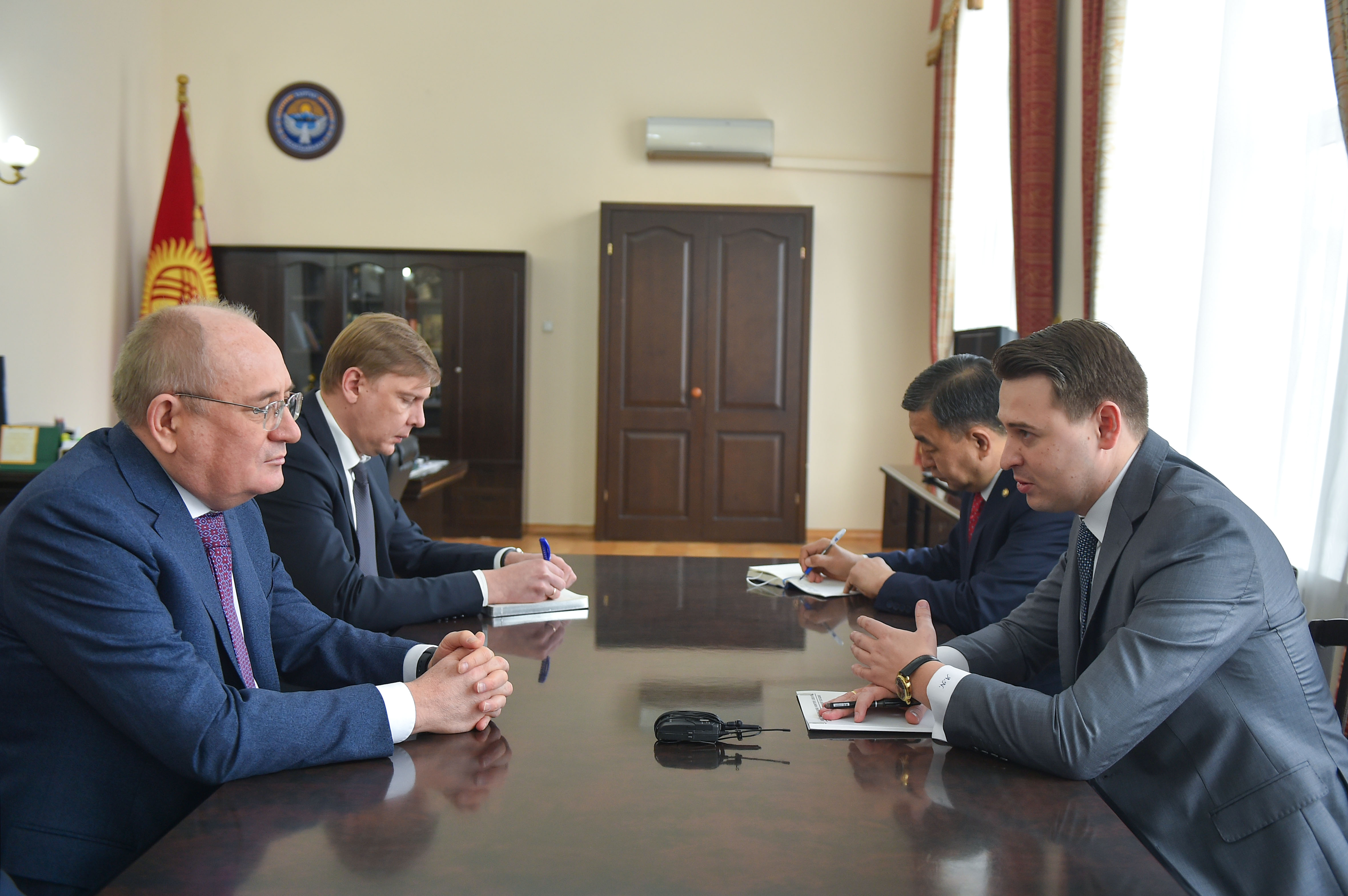 Исполняющий обязанности Премьер-министра, первого вице-премьер-министра Кыргызской Республики Артем Новиков встретился с заместителем председателя правления публичного акционерного общества «Газпром» Виталием Маркеловым.
