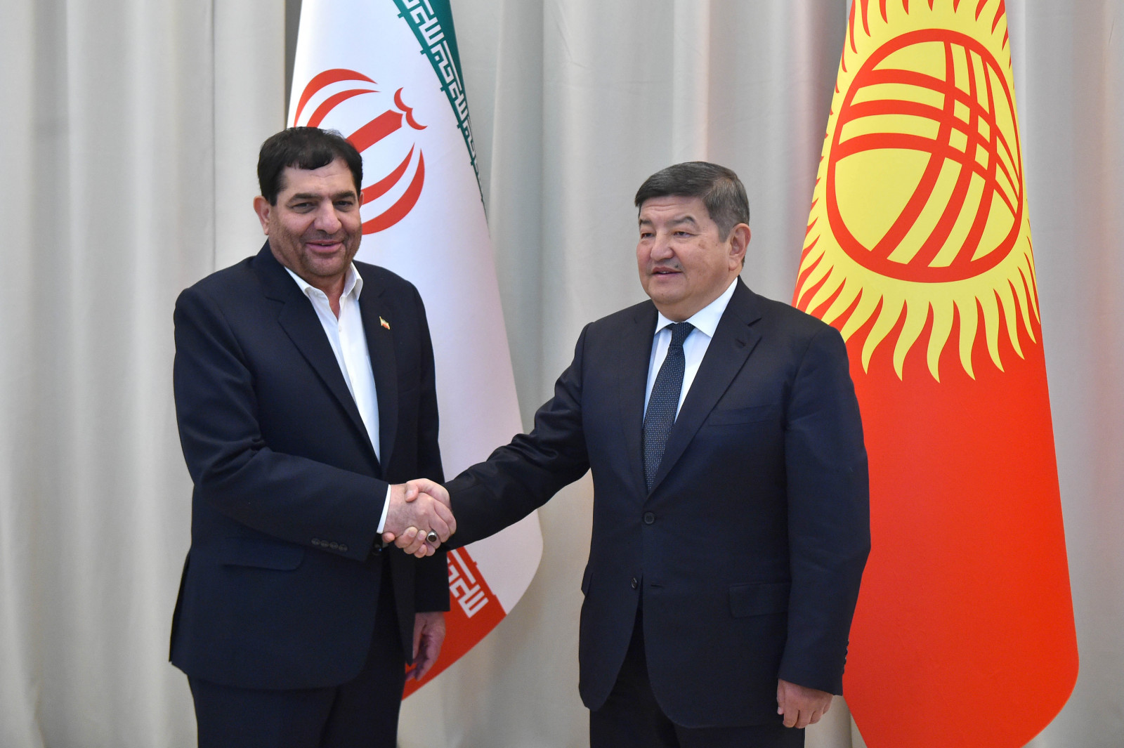 The Chairman of the Cabinet of Ministers of the Kyrgyz Republic and the Head of the Presidential Administration of the Kyrgyz Republic Akylbek Zhaparov held a meeting with the First Vice President of the Islamic Republic of Iran Mohammad Mohber who visited the Kyrgyz Republic as part of his participation in a meeting of the Council of Heads of Government of the Shanghai Cooperation Organization (SCO).