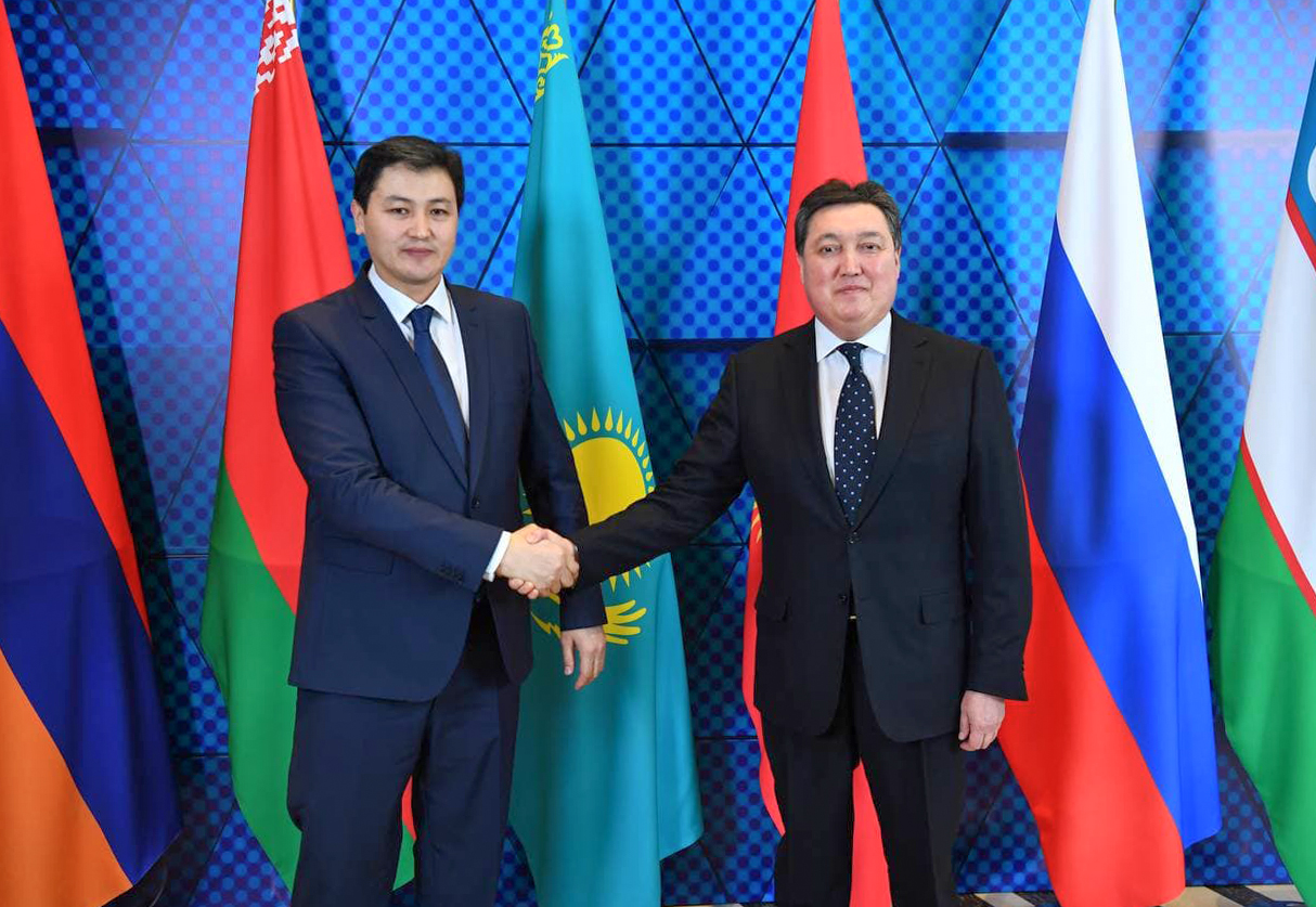 Алматы шаарында өткөн Евразия өкмөттөр аралык кеңешинин алкагында Кыргыз Республикасынын Премьер-министри Улукбек Марипов Казакстан Республикасынын Премьер-министри Аскар Мамин менен жолугушту.