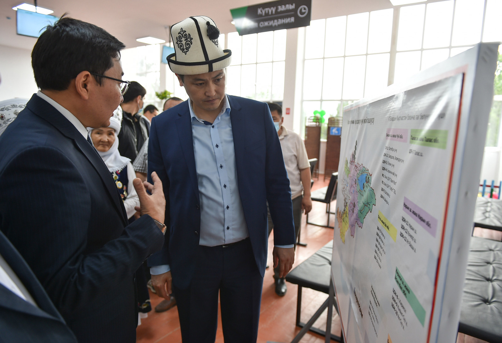 Андан соң Улукбек Марипов жаңы Калкты тейлөө борборунун иши менен таанышып, кардарлар менен баарлашты.