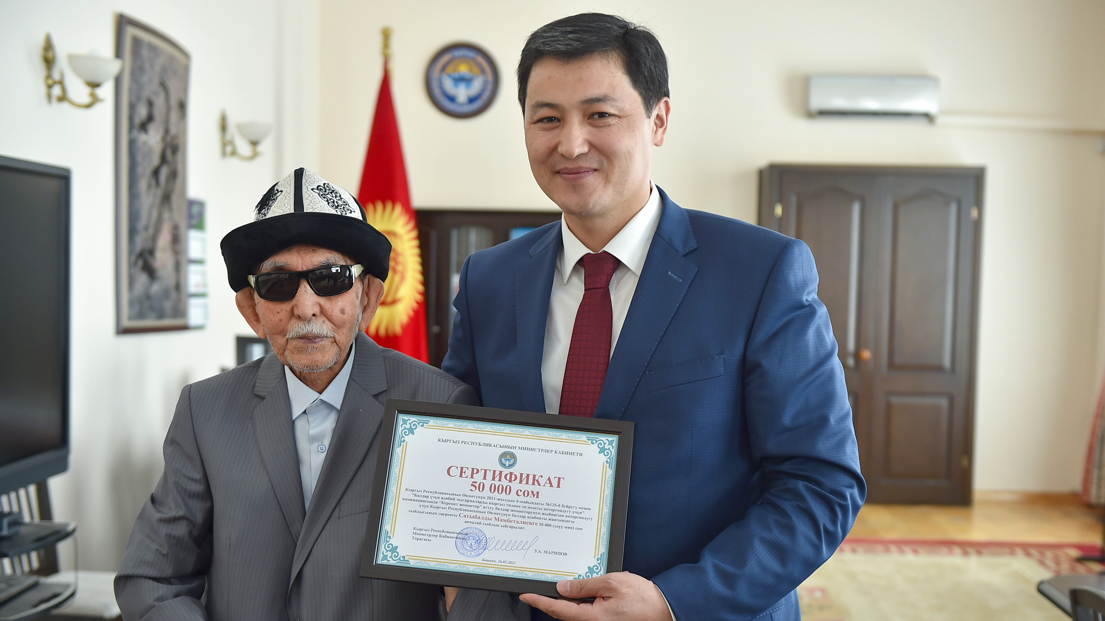 Министрлер Кабинетинин Төрагасы Улукбек Марипов Кыргыз Республикасынын Өкмөтүнүн балдар адабияты жаатындагы сыйлыгынын лауреаттарына сыйлык тапшырды