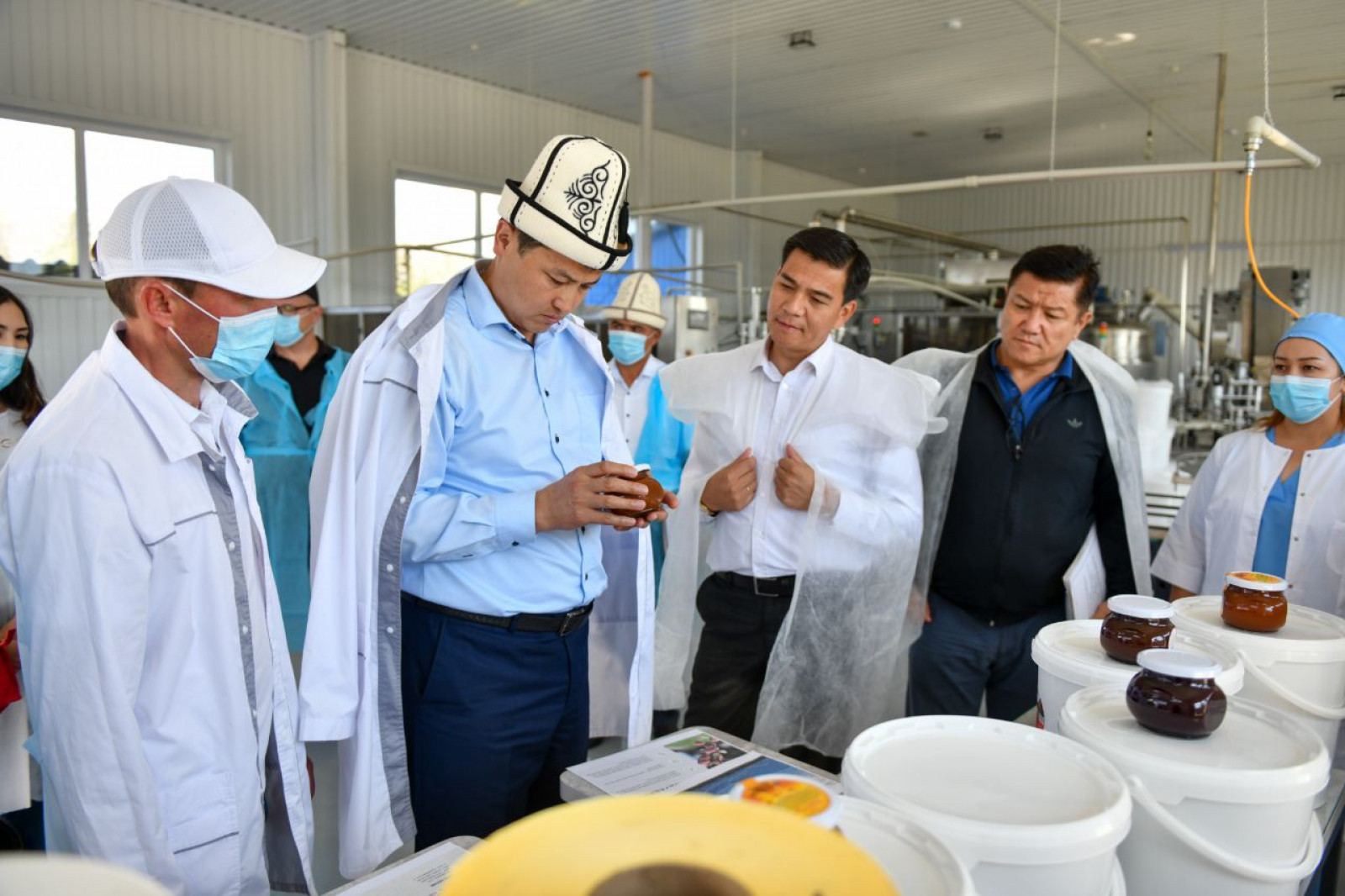 Министрлер Кабинетинин башчысы цехтерди көрүп чыгып, өндүрүштүк процесс менен таанышты. Белгиленгендей, компаниянын продукциясы Россия Федерациясына экспорттолот, ишкананын өндүрүштүк кубаттуулугу суткасына 5 тонна даяр сырьену түзөт.