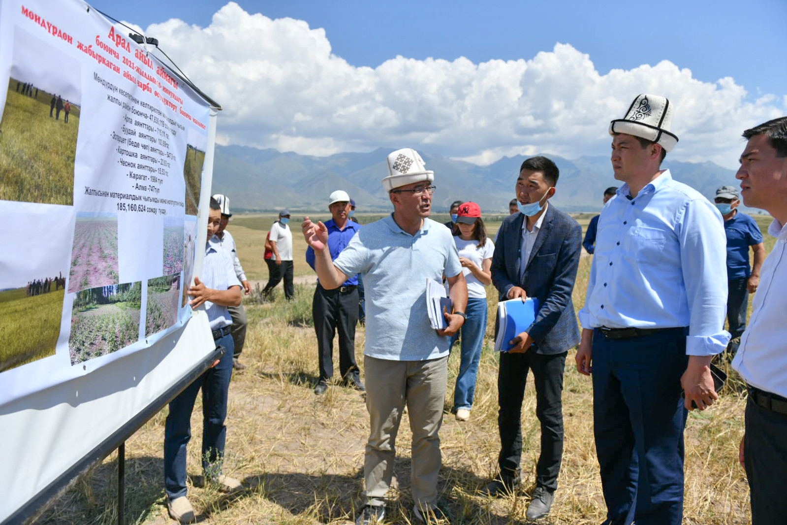 Улукбек Марипов ошондой эле катуу мөндүрдүн кесепетинен айыл чарба өсүмдүктөрүнө залал келтирилген Түп районунун Арал айыл аймагынын жер тилкелерин кыдырып чыкты. Тактап айтканда, 647 гектар арпа, 71 гектар буудай, 376 гектар эспарцет, 29 гектар картошка, 22 гектар сарымсак, ошондой эле 500 карагат көчөтүнө зыян келтирилген. Себүү иштерине 7,8 миллион сомдон ашык каражат сарпталган.