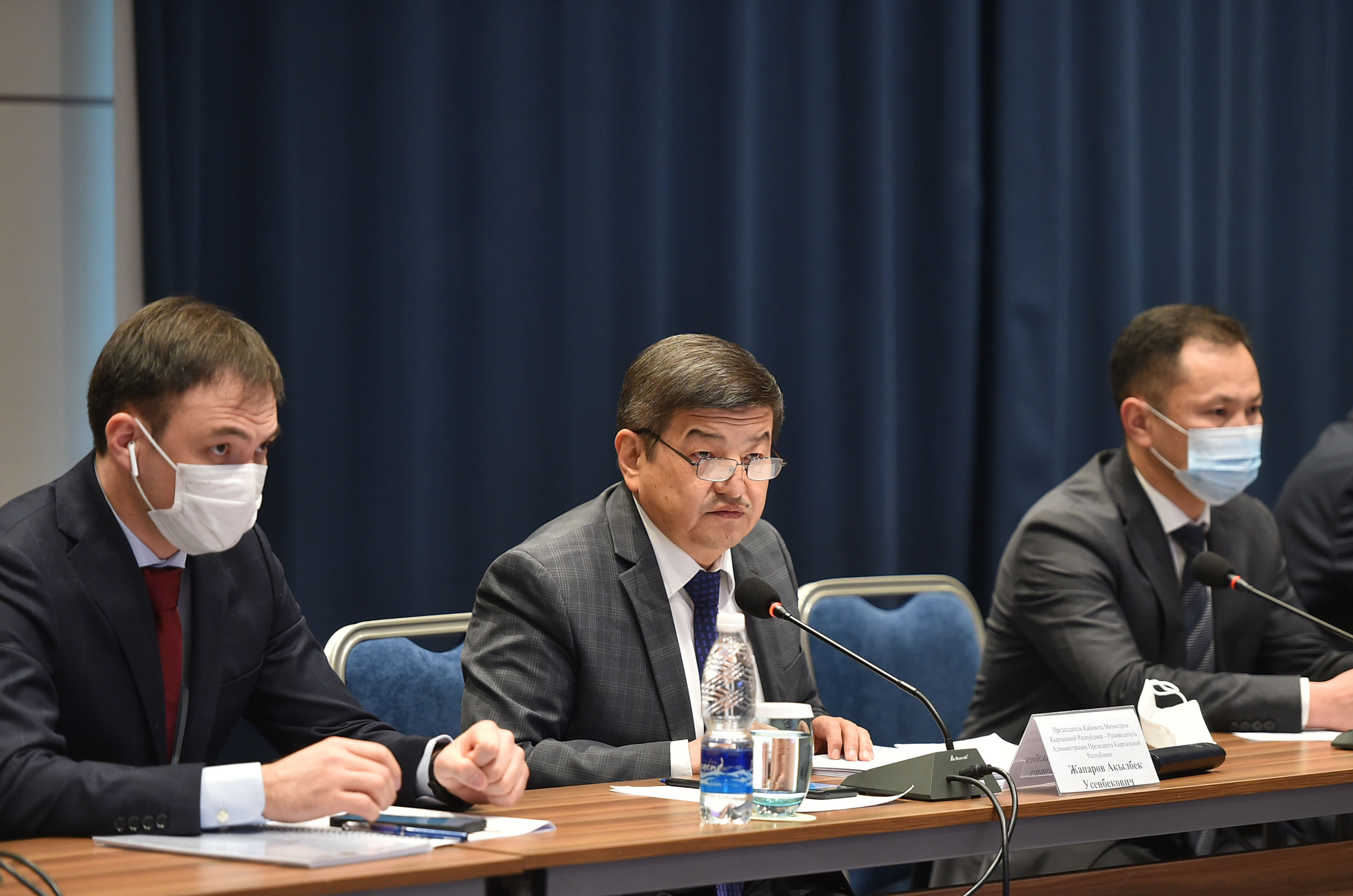 Кыргыз Республикасынын Министрлер Кабинетинин Төрагасы Акылбек Жапаров «Мамлекеттик сатып алуулар жөнүндө» Кыргыз Республикасынын Мыйзам долбоорунун коомдук угуусуна катышты.
