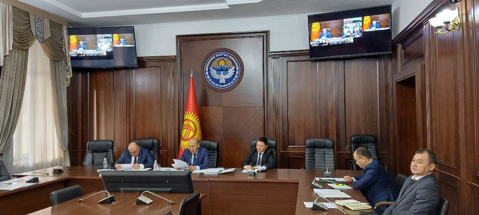 Кыргыз Республикасынын Президентинин жана Министрлер Кабинетинин чечимдерин даярдоо боюнча башкармалыгынын начальниги Алтынбек Эргешов эпидемиологиялык кырдаалдын курчушуна байланыштуу видеоконференцбайланыш режиминде өткөн Президенттин Чүй облусундагы ыйгарым укуктуу өкүлчүлүгүнүн коллегиясынын жыйынына катышты.