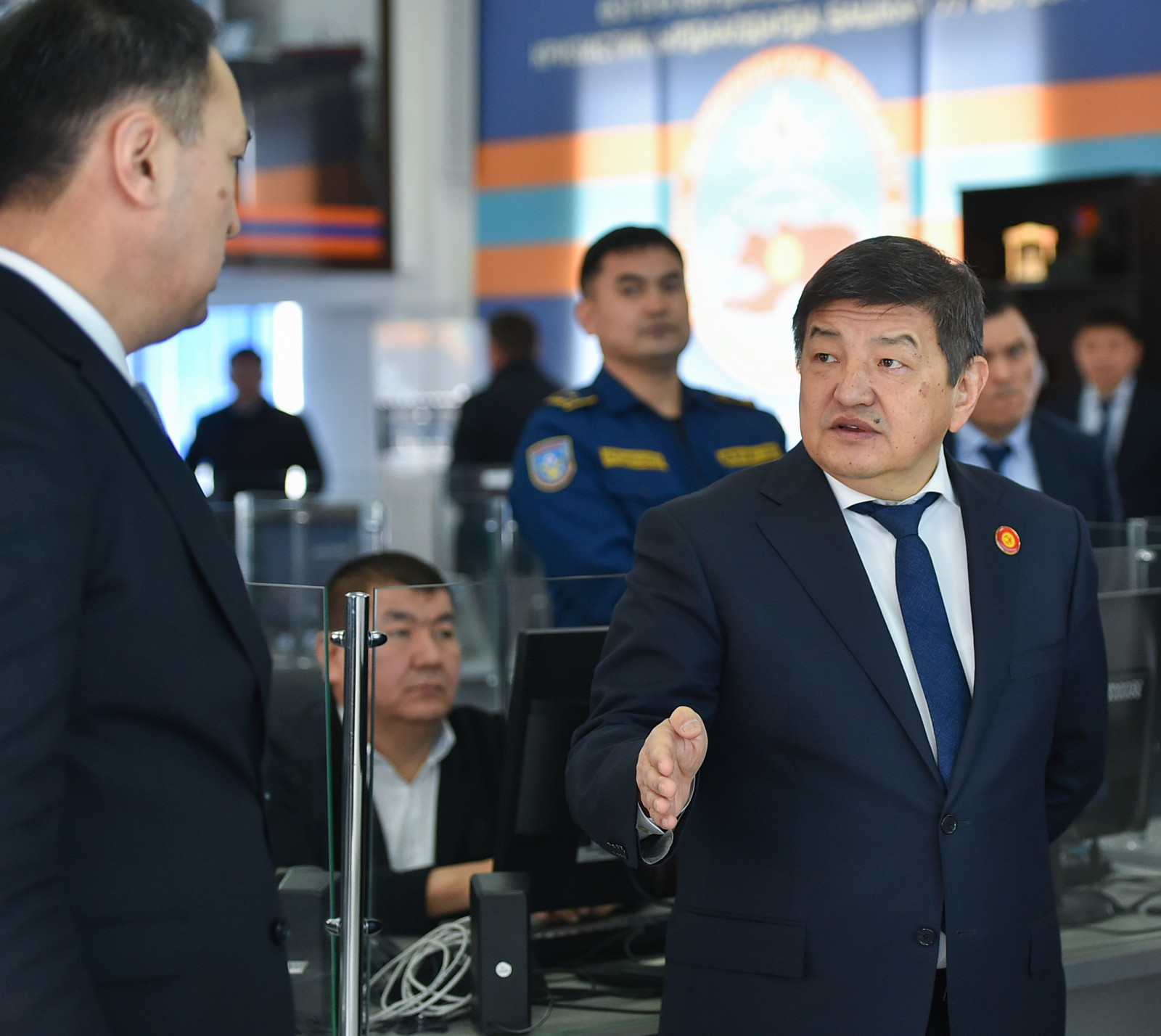 Кыргыз Республикасынын Министрлер Кабинетинин Төрагасы Акылбек Жапаров Кыргыз Республикасынын Өзгөчө кырдаалдар министрлигинин Кризистик кырдаалдарда башкаруу борборунун техникалык мүмкүнчүлүктөрү менен таанышты.