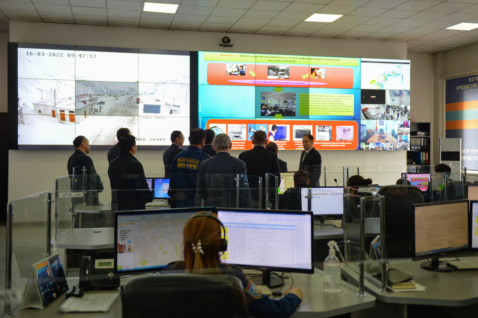 Министрлер Кабинетинин башчысы ошондой эле министрликтердин жана ведомстволордун, мамлекеттик администрациялардын жана жергиликтүү өз алдынча башкаруу органдарынын аварияларга, өрткө, табигый кырсыктарга жана башка өзгөчө кырдаалдарга өз убагында чара көрүүнү уюштуруу боюнча «112 системасы» нөөмөт-диспетчердик кызматтардын бирдиктүү түз байланышынын иши менен таанышты.