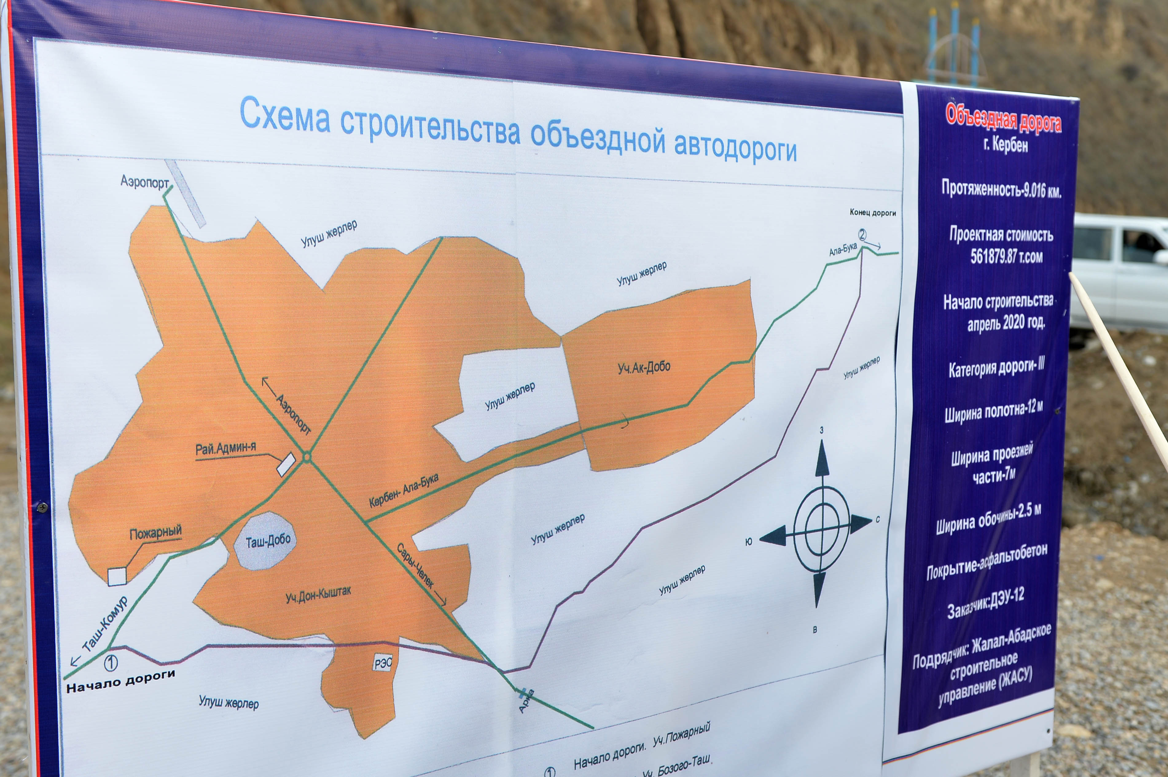 Андан соң Министрлер Кабинетинин башчысы Кербен шаарындагы 9 чакырымга созулган айланма жолдун курулушу менен таанышты. Бул жолдун курулушу жыйынтыкталса, жарандар жана оор жүк ташуучу унаалардын каттоосу үчүн ыңгайлуу шарттар түзүлөт. Курулуштун жалпы сметалык наркы 178 млн сомду түзөт.