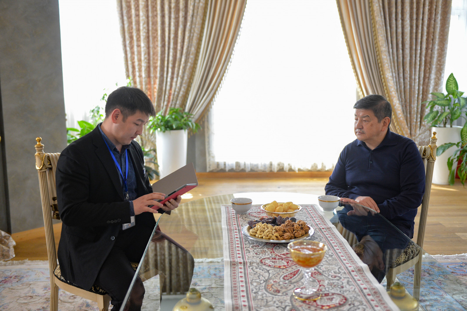 Министрлер Кабинетинин башчысы каттоочунун суроолоруна жооп берип, ал атайы мобилдик тиркеме аркылуу толтурулду.