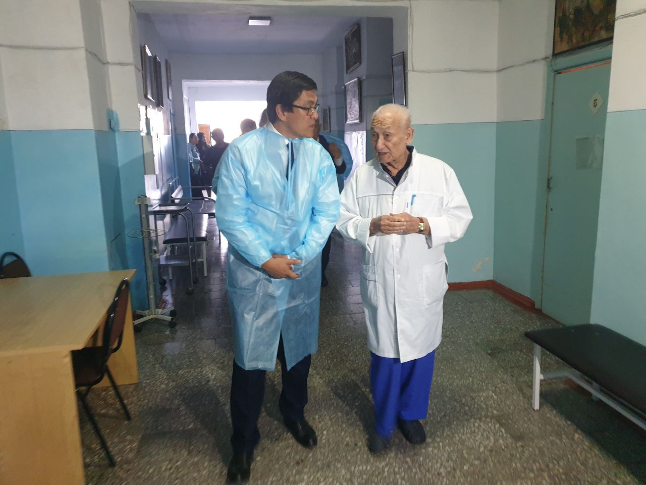 Алгач ал, Чүй облустук ооруканасынын хирургия бөлүмүнүн башчысы, профессор, Кыргыз Республикасынын Баатыры Эрнст Акрамов менен жолугушту.