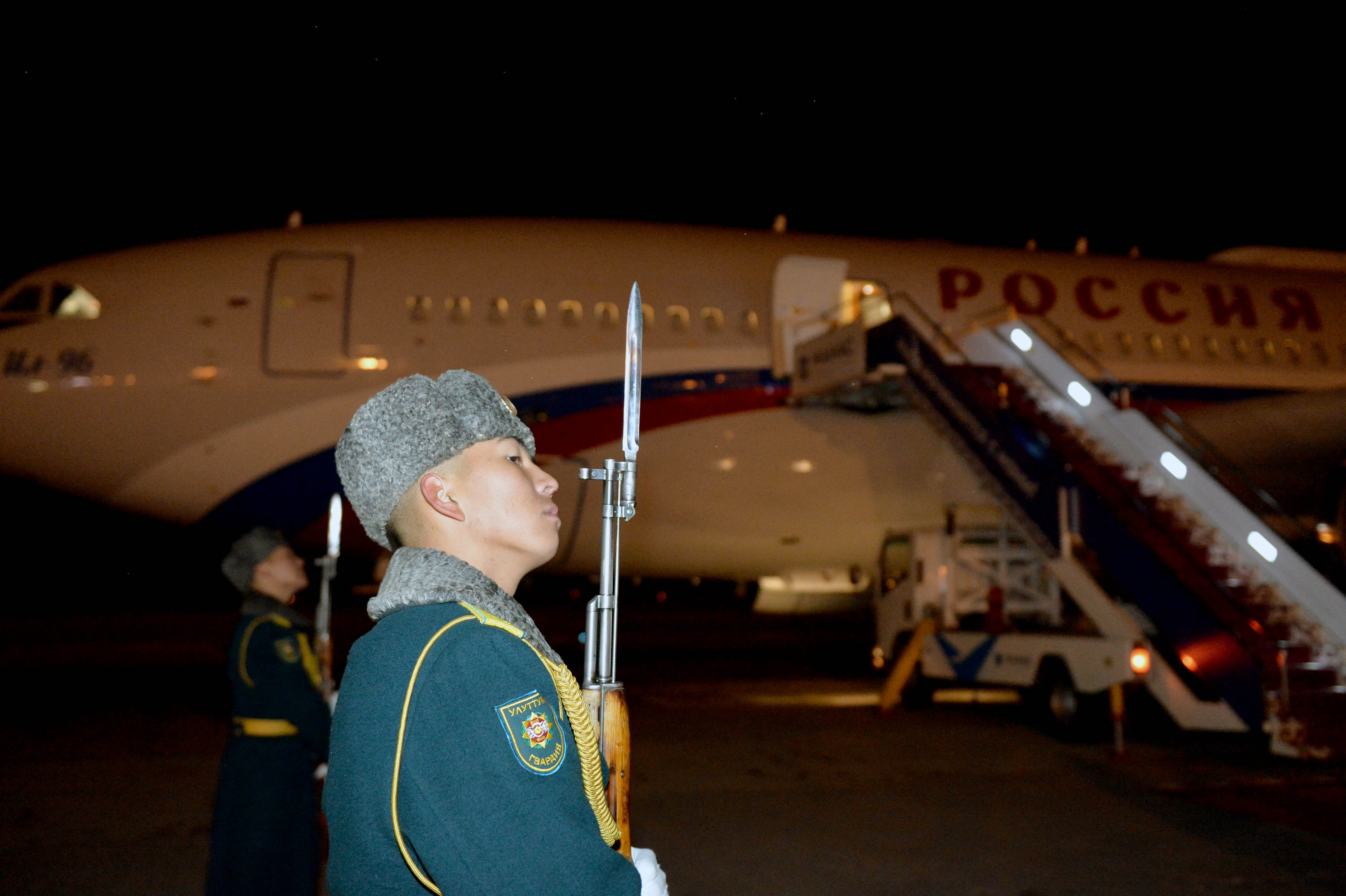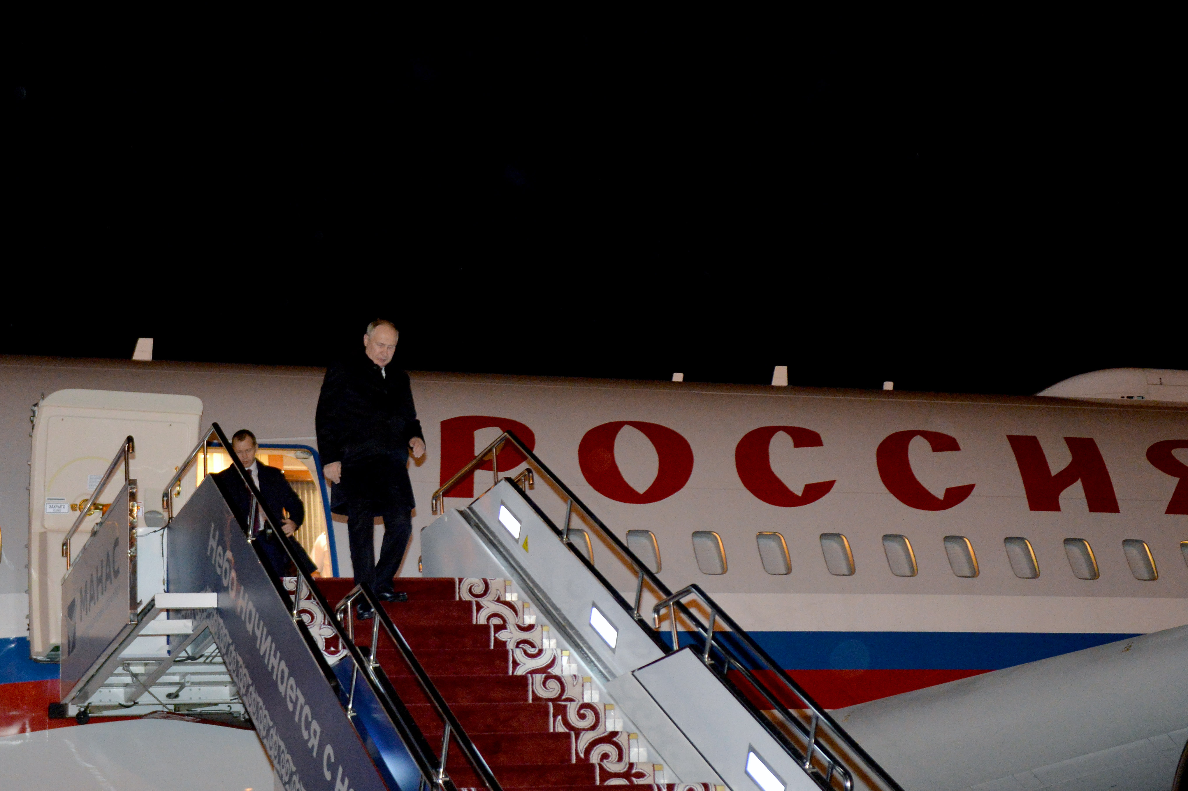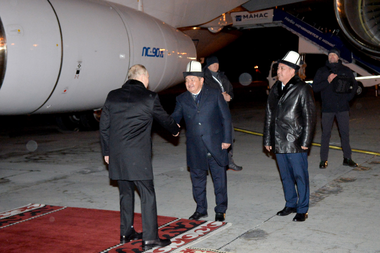 «Манас» Эл аралык аэропортунда Россия Федерациясынын Президенти Владимир Путинди Кыргыз Республикасынын Министрлер Кабинетинин Төрагасы — Кыргыз Республикасынын Президентинин Администрациясынын Жетекчиси Акылбек Жапаров тосуп алды.