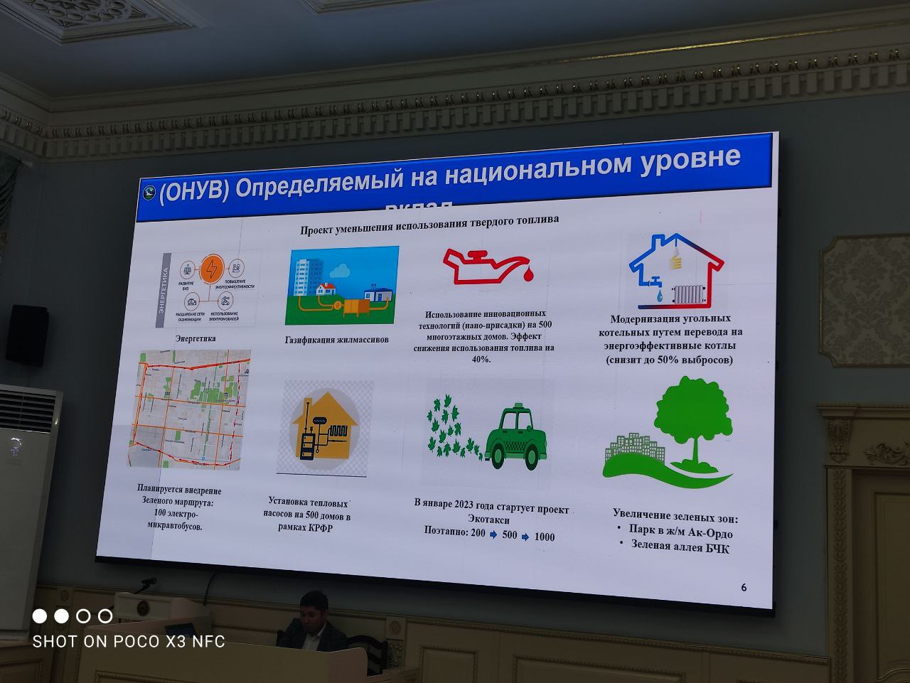 Отурумдун жыйынтыгы боюнча мамлекеттик органдарга көрсөтүлгөн багыттар боюнча кадамдык иш-чаралардын планын иштеп чыгуу, анын ичинде отканаларды жаратылыш газына которууну активдештирүү, экологиянын жана абанын жаңы сапаттык көрсөткүчтөрүн бекитүү тапшырмасы берилди, алар боюнча үзгүлтүксүз мониторинг жүргүзүлүп турат.