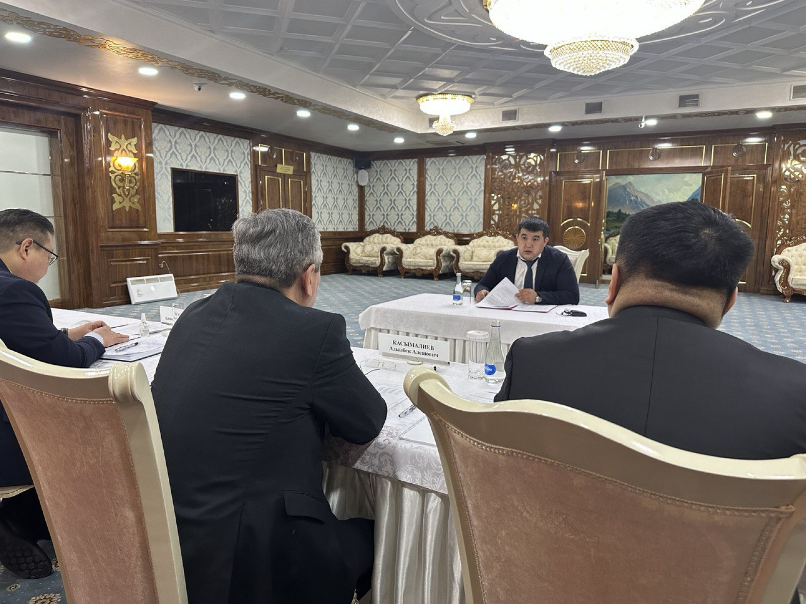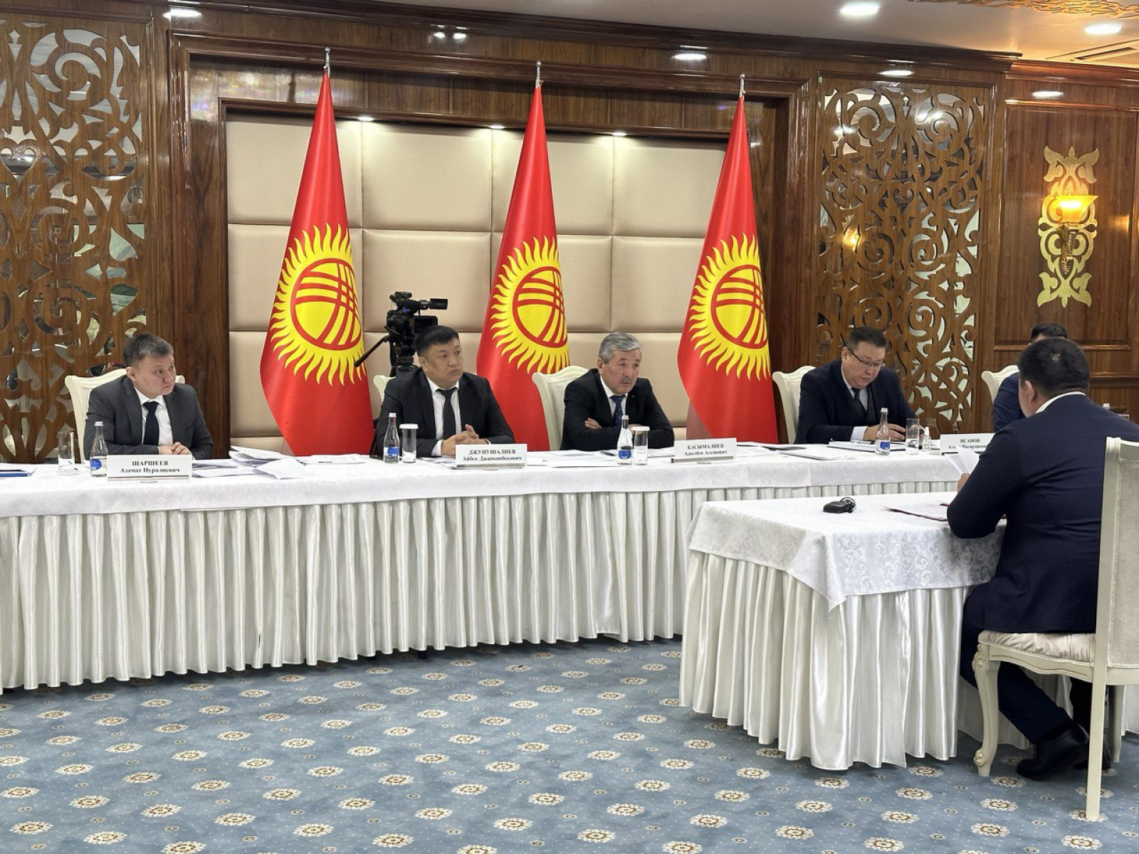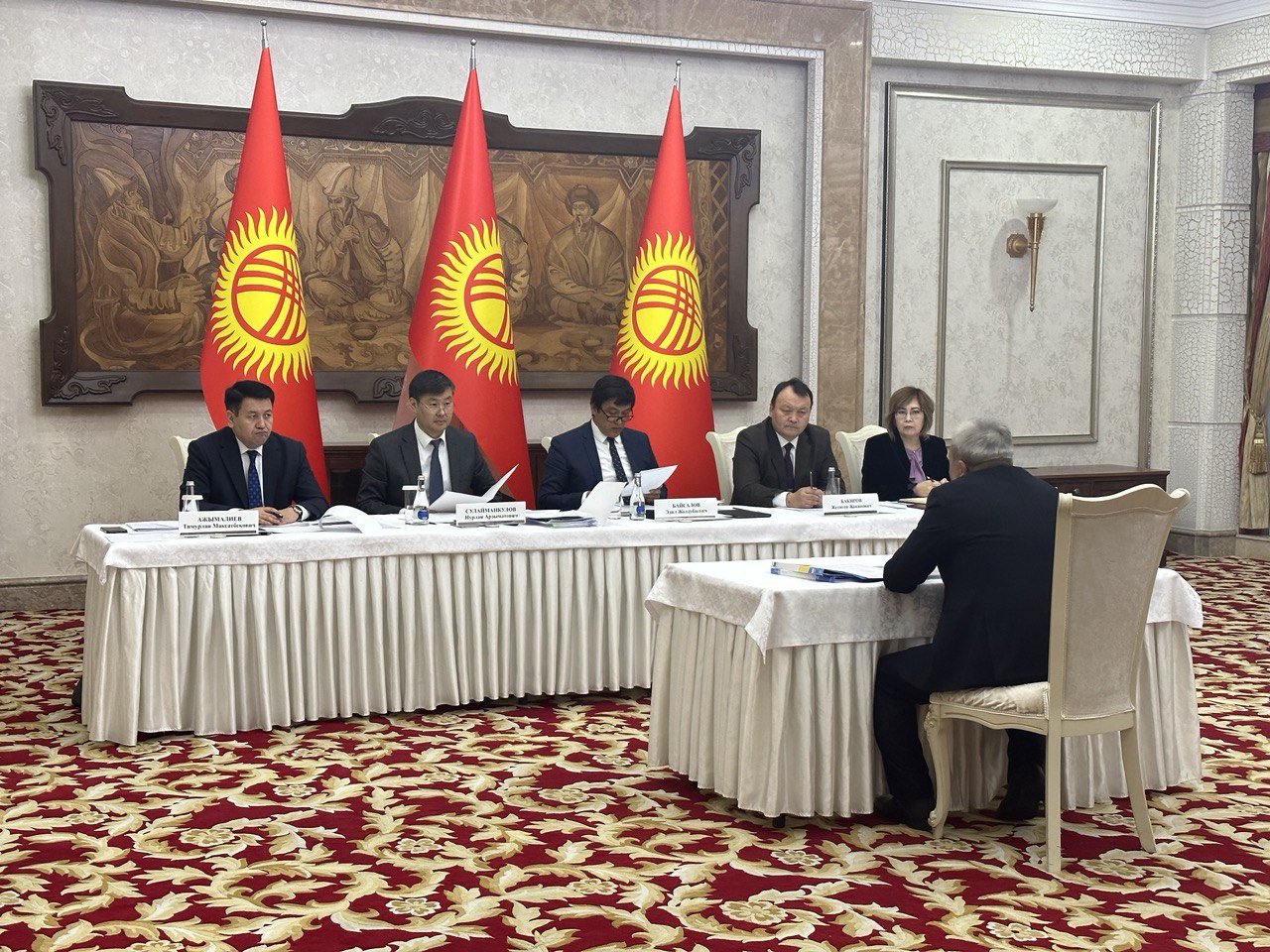 Жергиликтүү бийлик өкүлдөрү Бишкекте Министрлер Кабинетинин жетекчилигине өздөрүнүн ишмердүүлүгү тууралуу маалымат жана аткарган иштери боюнча отчет берүүдө.