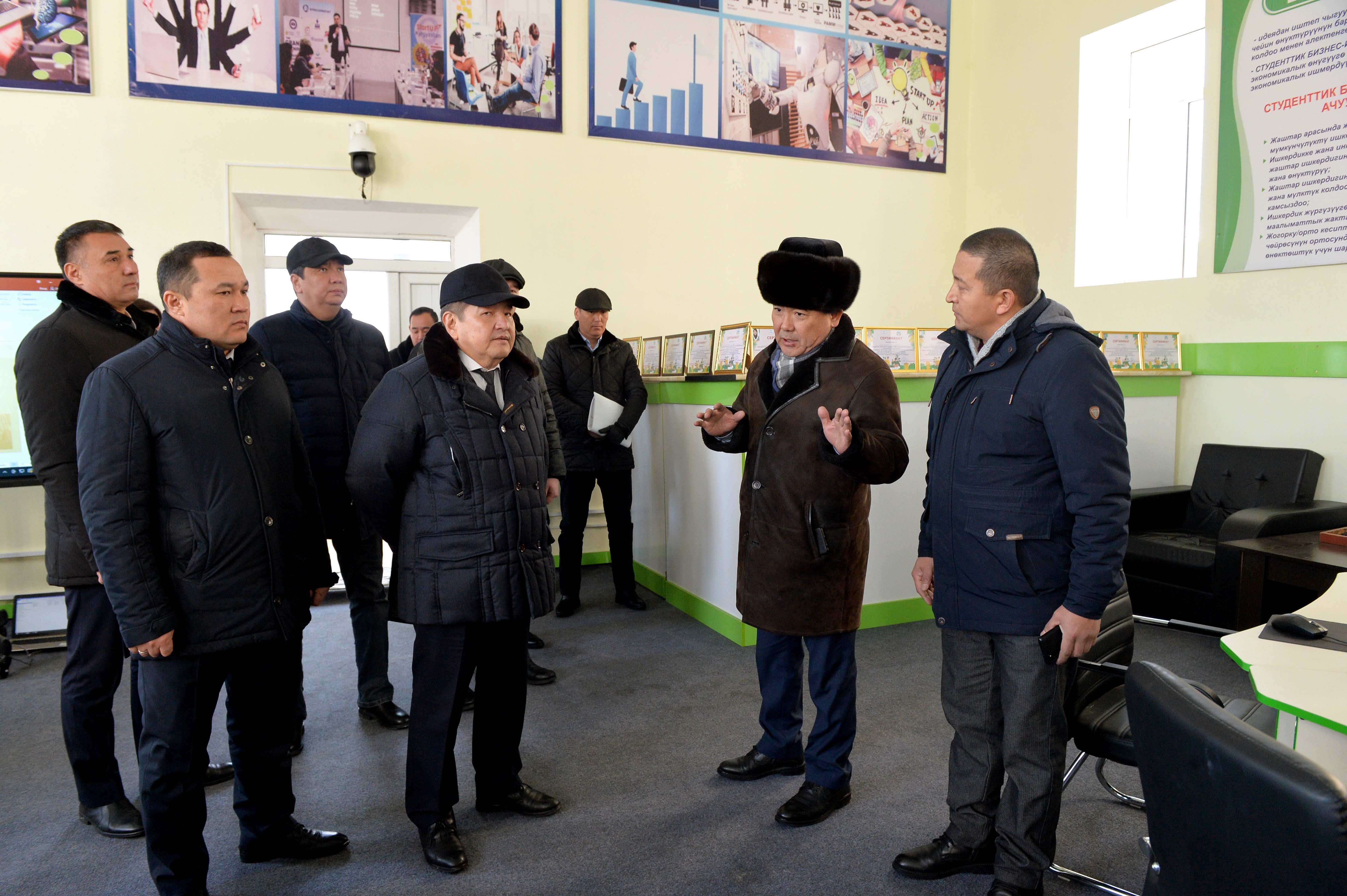 Жумушчу сапарынын соңунда Министрлер Кабинетинин башчысы Жалал-Абад мамлекеттик университетинде болуп, окуу процесси менен таанышып, окуу жайды өнүктүрүү боюнча бир катар милдеттерди койду.