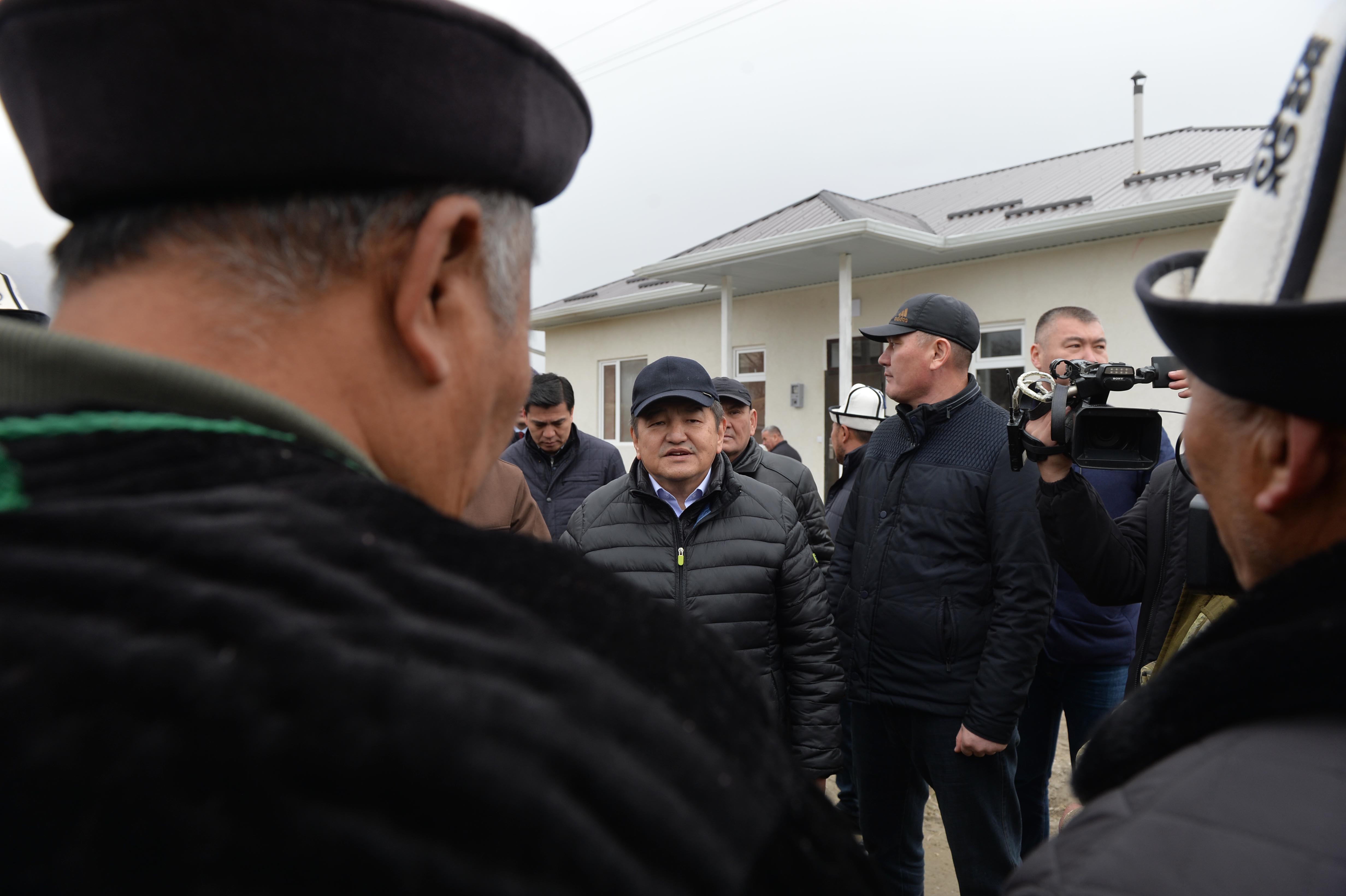 “Туура, буга чейин курулуш материалдары жолдордо үйүлүп тургандыктан иштер башталган эмес. Эми жолдор салынып, электр зымдары тартылып, таза суу, сугат суу системалары толугу менен ишке киришсин. Айрыкча таптакыр талкаланып кеткен Капчыгай, Ак-Сай айылдарына көчө бойлото арча-карагайлардан отургузуу унутта калтырылбасын. Татынакай айыл болуп калсын деген Президенттин тилегин баарылап ишке ашыруууга милдеттүүбүз”, - деди ал.