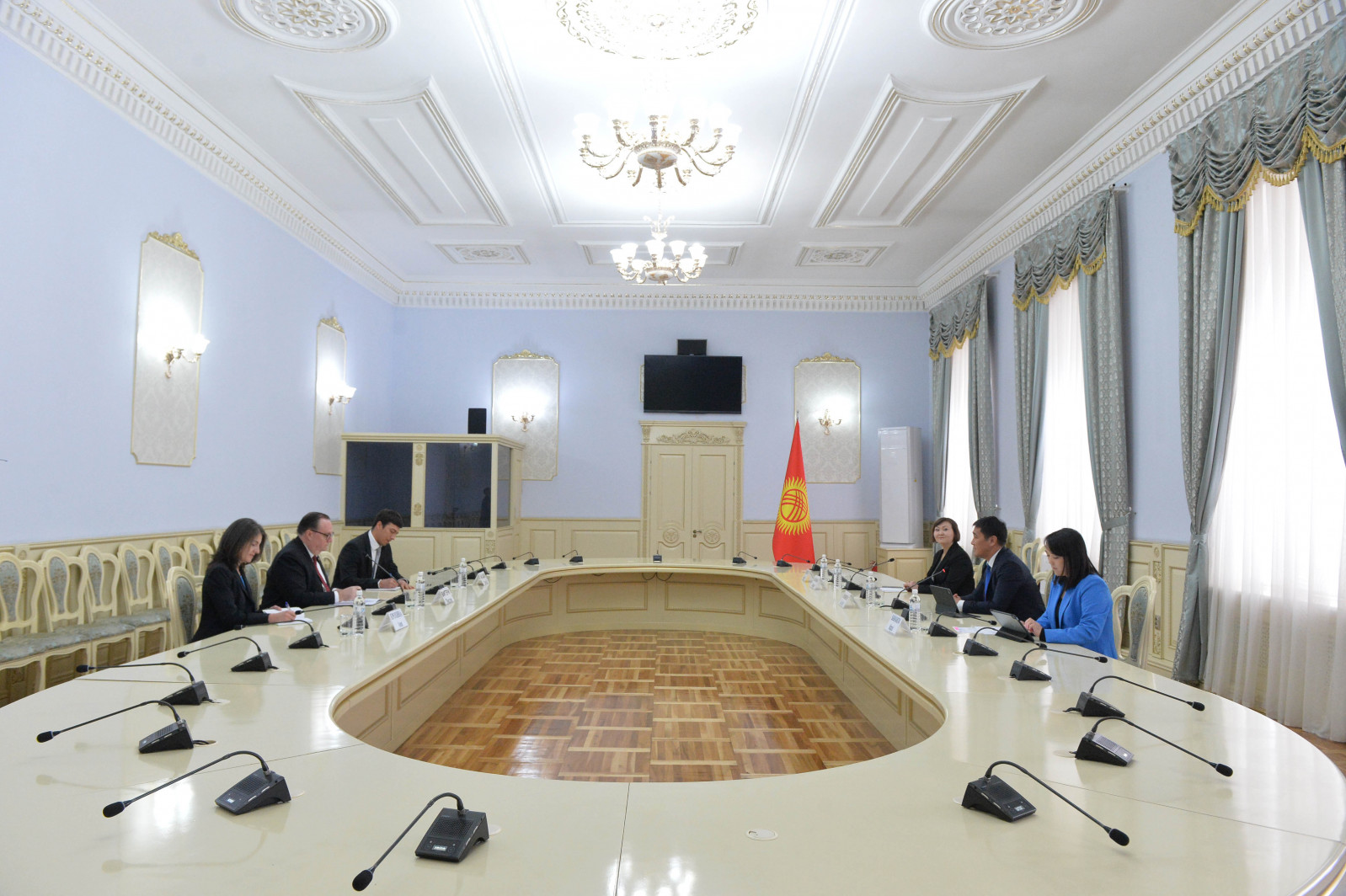 Кыргыз Республикасынын Президентинин Администрациясынын маалыматтык саясат кызматынын жетекчиси Дайырбек Орунбеков Америка Кошмо Штаттарынын Кыргыз Республикасындагы Атайын жана Ыйгарым укуктуу Элчиси Лесли Вигери менен жолукту.