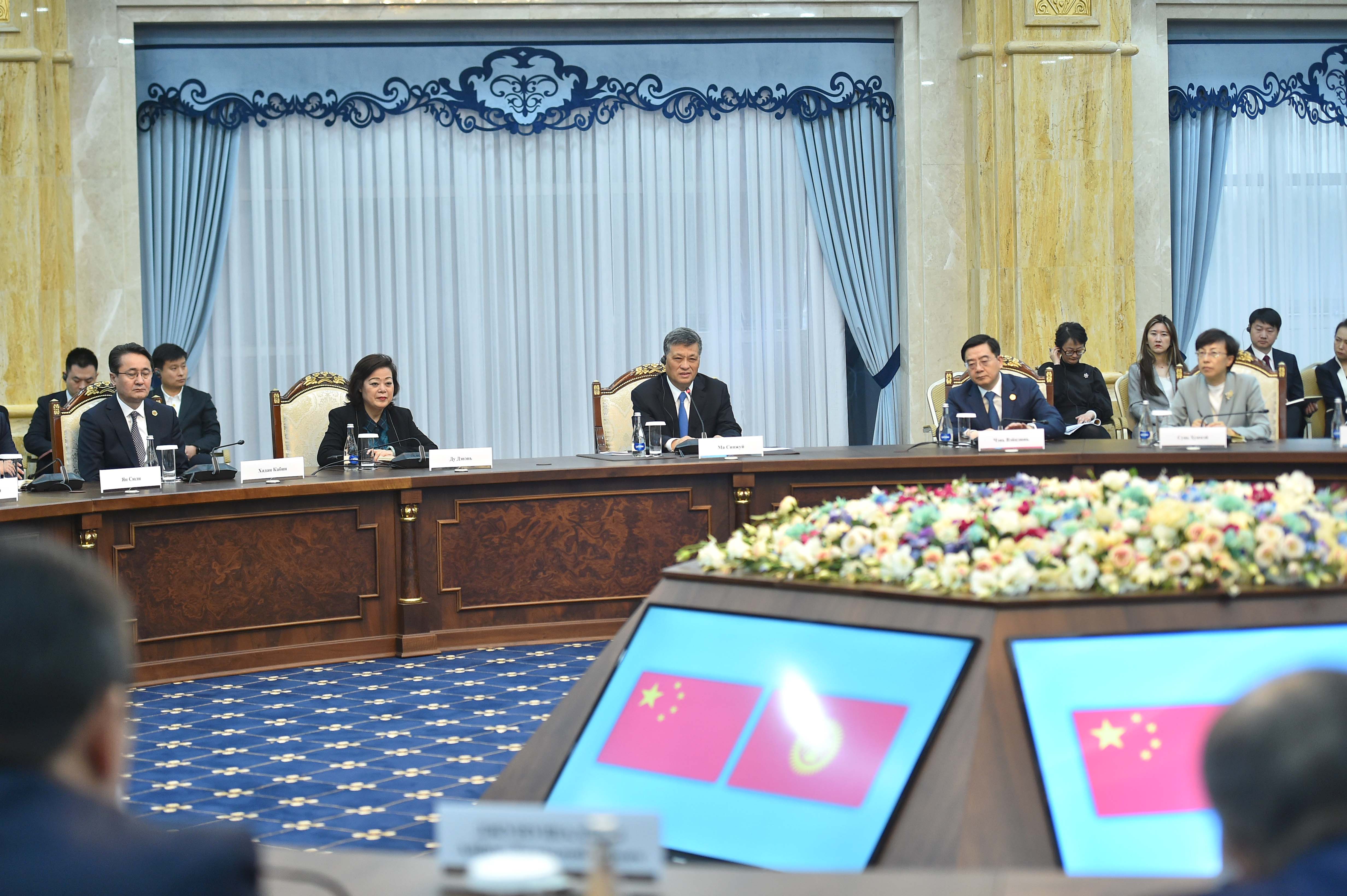 Министрлер Кабинетинин Төрагасы Акылбек Жапаров менен Кытай Коммунисттик партиясынын Борбордук Комитетинин Саясий Бюросунун мүчөсү, КЭР СУАР Партиялык комитетинин Катчысы Ма Синжуй кызматташу