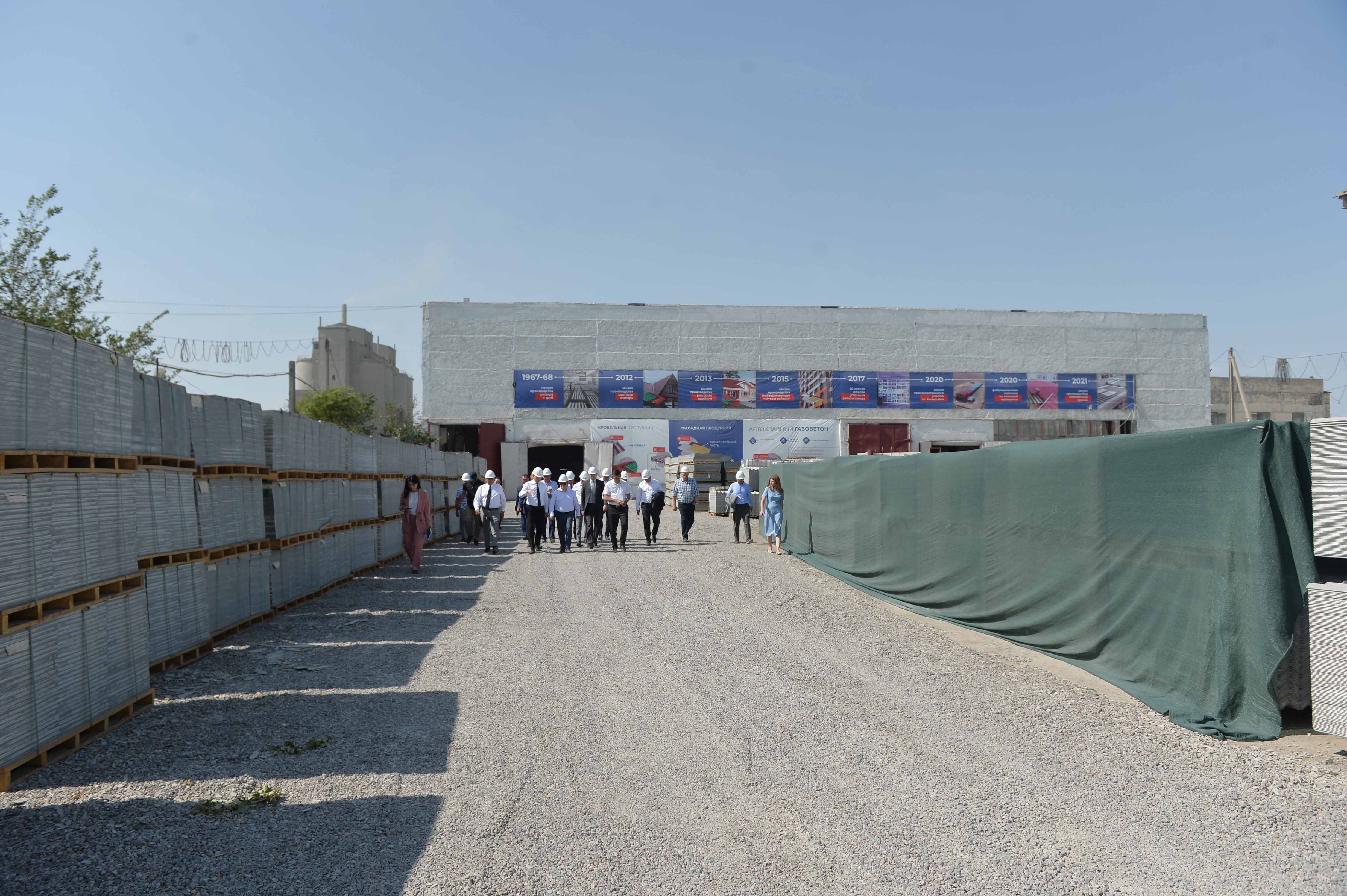 Андан ары Министрлер Кабинетинин Төрагасы “Кант труба-шифер ишканасы” ЖЧКсы (Кант ТШИ) ишке ашырып жаткан жаңы автоклавдуу газобетон заводунун курулушу менен таанышты.