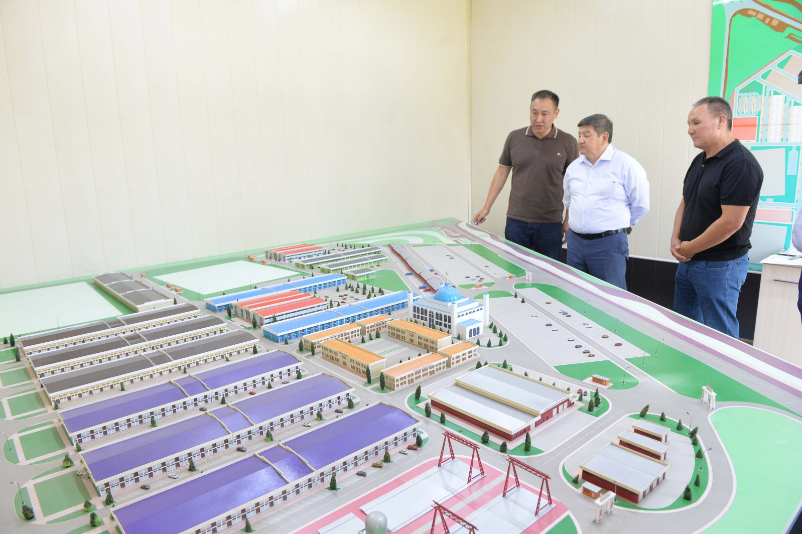 Андан ары Министрлер Кабинетинин Төрагасы Аламүдүн районундагы “Караван” соода-логистикалык борборуна барып, “Батыр логистикалык” борборунун логистикалык долбоору менен таанышты.