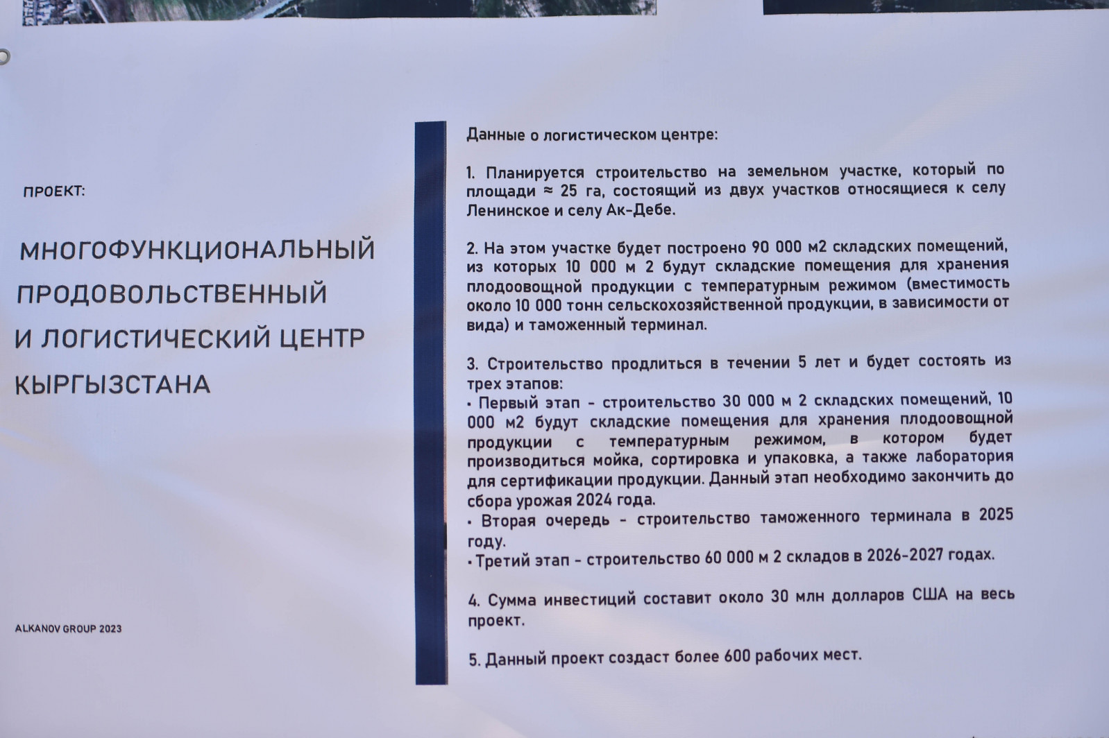 Долбоорго ылайык, ишкана биринчи этапта 400дөн ашуун адамды иш менен камсыз кылса, экинчи этапта 1000ге чейин жумуш орундарын түзүү каралууда. Өндүрүштү ишке киргизүү 2024-жылга пландалып, инвестициянын жалпы көлөмү 34,6 млн АКШ долларын түзсө, анын 25 млн АКШ долларын Орус-Кыргыз өнүктүрүү фонду бөлөт.
