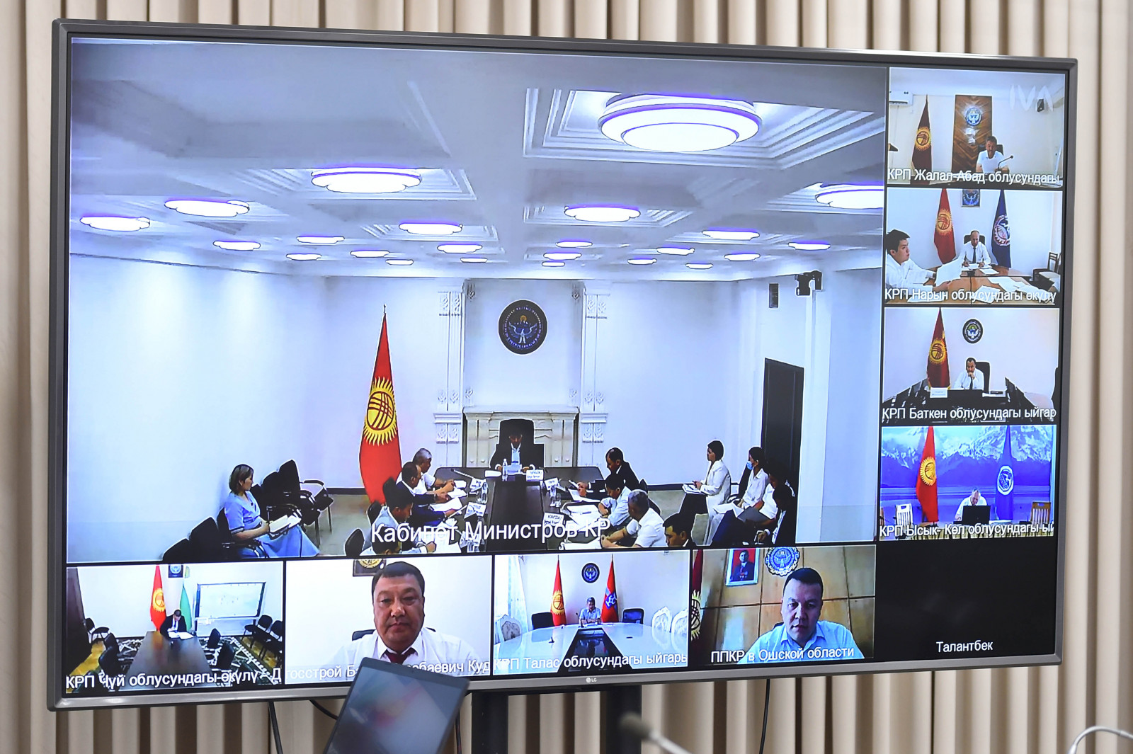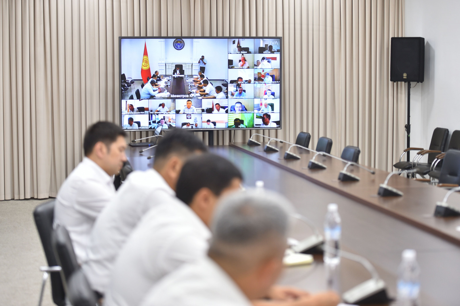 Жыйынга тиешелүү мамлекеттик мекемелердин, ошондой эле Президенттин облустардагы ыйгарым укуктуу өкүлдөрү жана өлкө аймактарындагы энергетиктер видео-конференц-байланыш режиминде катышты.