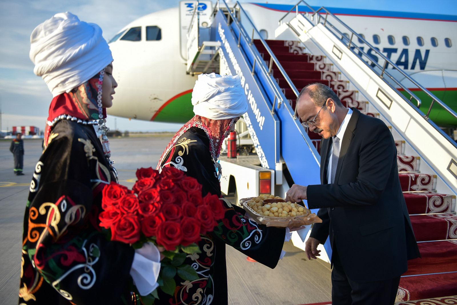 “Манас” эл аралык аэропортунан Өзбекстандын Премьер-министри Абдулла Ариповду Кыргыз Республикасынын Министрлер Кабинетинин Төрагасынын орун басары Бакыт Төрөбаев тосуп алды.
