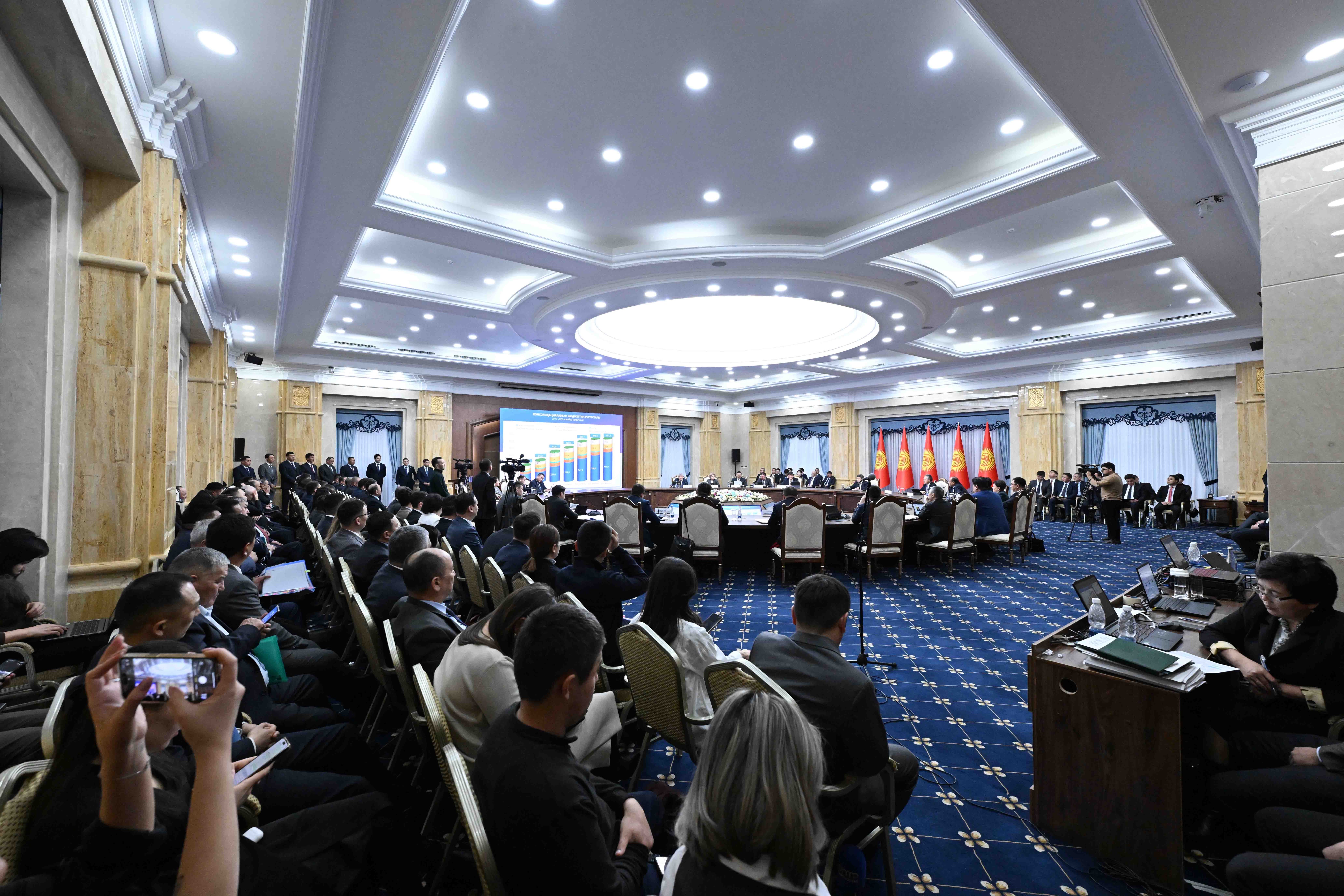 Акылбек Жапаров 2023-жылы консолидацияланган бюджет 575 миллиард сомдон ашык сумманы түзсө, 2024-жылы 600,7 миллиард сом пландалып жатканын кошумчалады. Жалпысынан 2020-жылга (248 млрд) салыштырмалуу 2024-жылы бул көрсөткүч 353 млрд сомго көп болот (2021, 2022, 2023 - 2,5 жылда 329 млрд сомго көп).