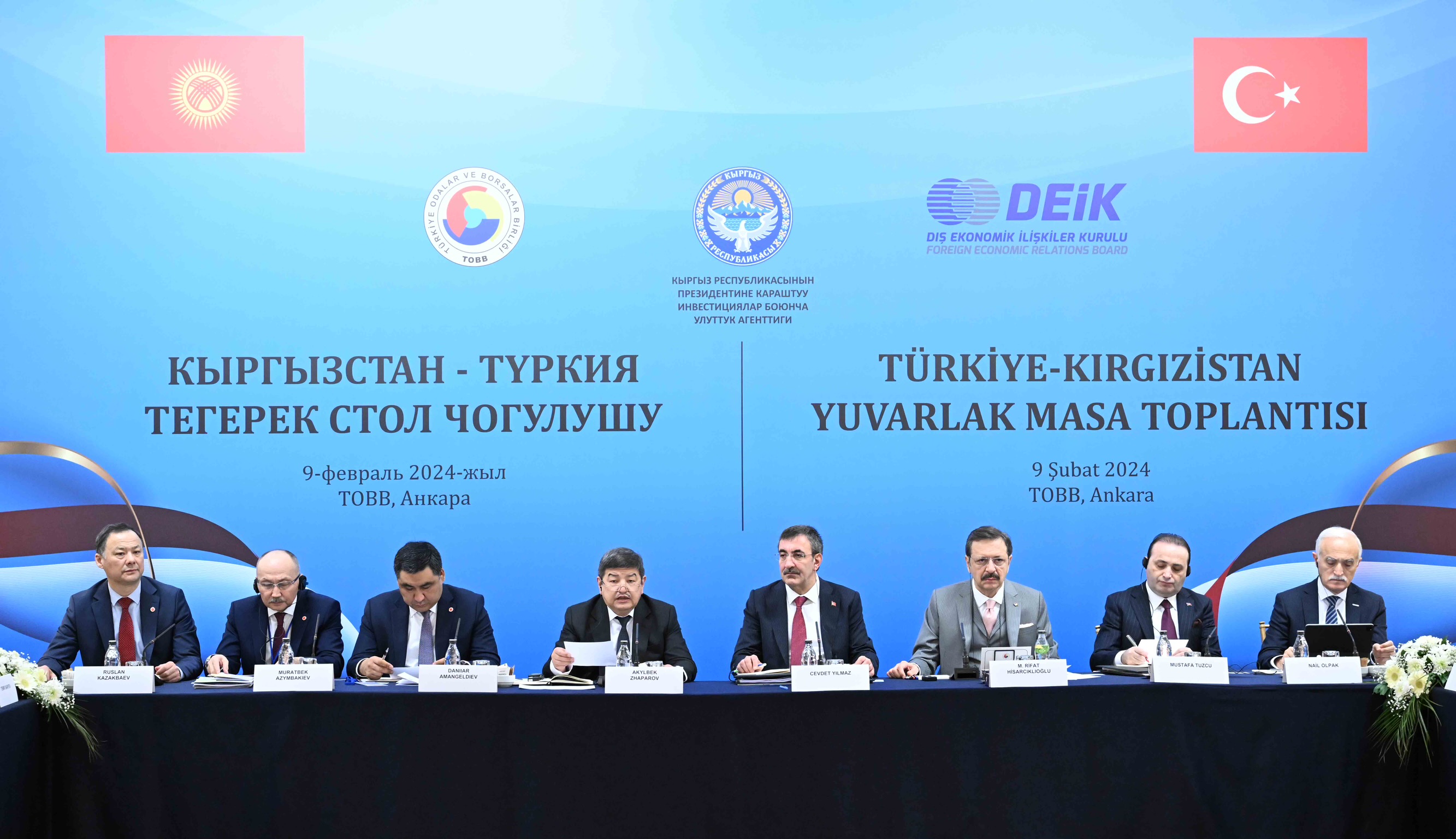 Өз кезегинде Түркиянын Соода палаталары жана товардык биржалары биримдигинин (TOBB) Президенти Рифат Хисаржыклы оглу жолугушууга ири түркиялык компаниялардын өкүлдөрү чогулганын айтып, ал Кыргызстанда чет өлкөлүк инвесторлор үчүн түзүлүп жаткан шарттарга ыраазычылык билдирди.