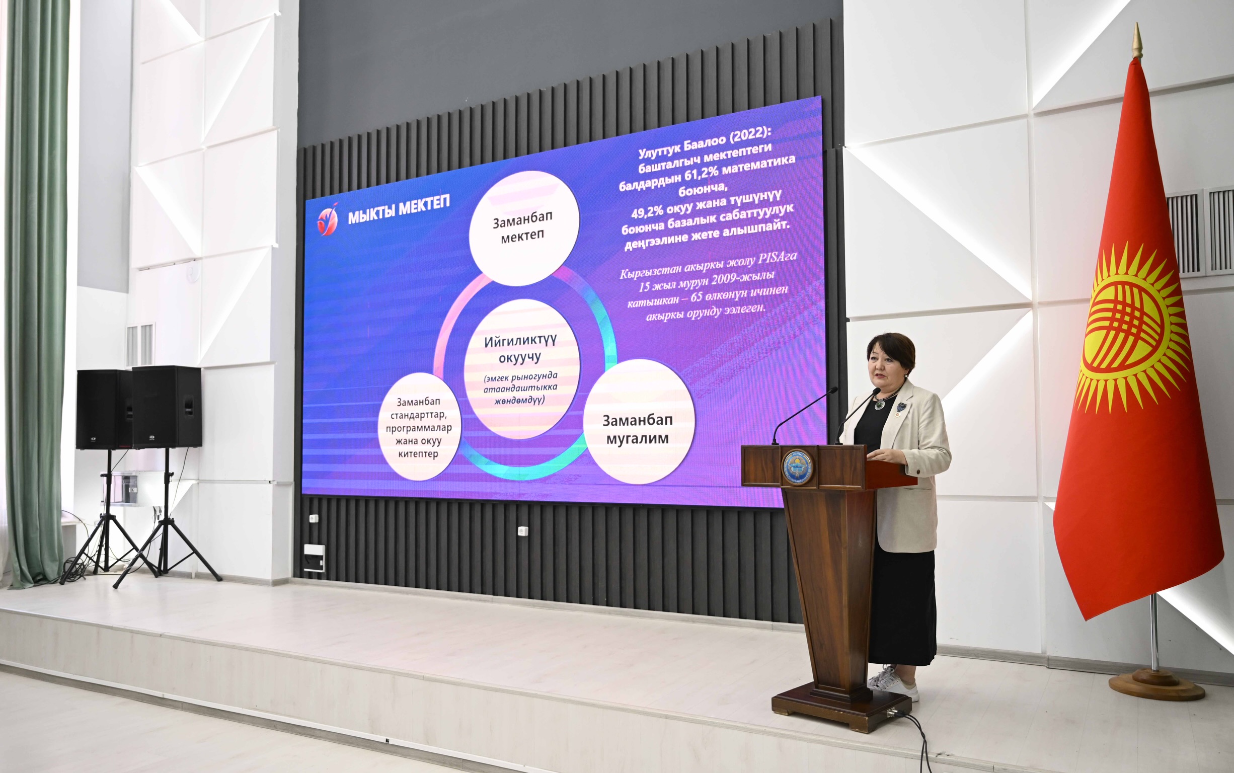 Аны менен МинКаб Төрагасы, өлкө экономикасында жасалып жаткан реформалар туурасында кеп кылып, 2030-жылга чейин ИДПны 30 млрд долларга жеткирүү тапшырмасы коюлганын, анын 6-8 пайызы билим берүү тармагына жумшалаарын белгилеп, бул тармактын кызматкерлерине чоң ишеним артылып жатканын билдирди.