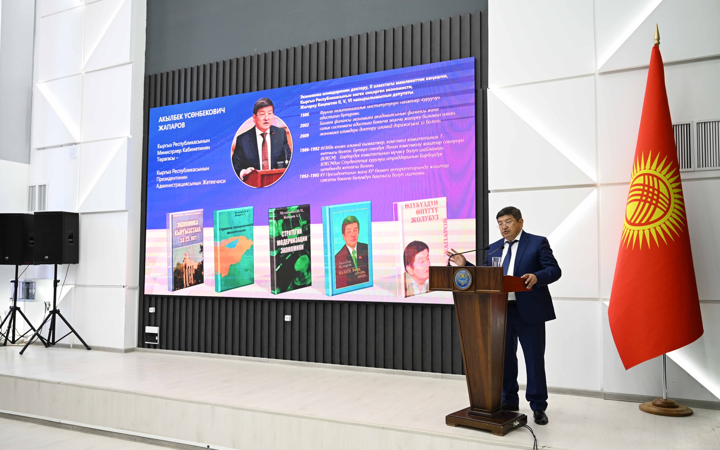Министрлер Кабинетинин Төрагасы-Кыргыз Республикасынын Президентинин Администрациясынын Жетекчиси Акылбек Жапаров Ош облусуна жасаган иш сапарынын алкагында Ош мамлекеттик университетинин студенттери үчүн меймандык лекциясын окуду.