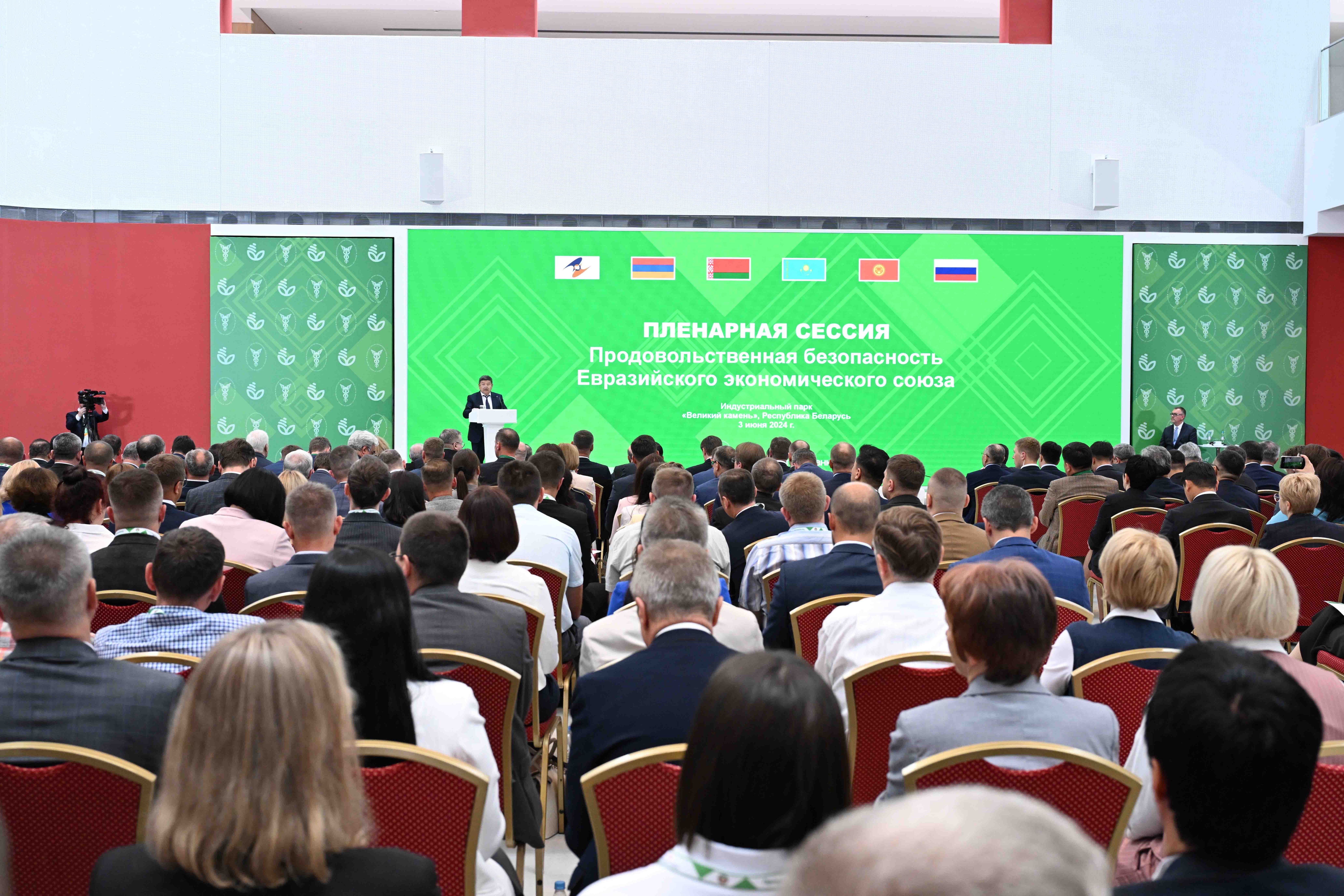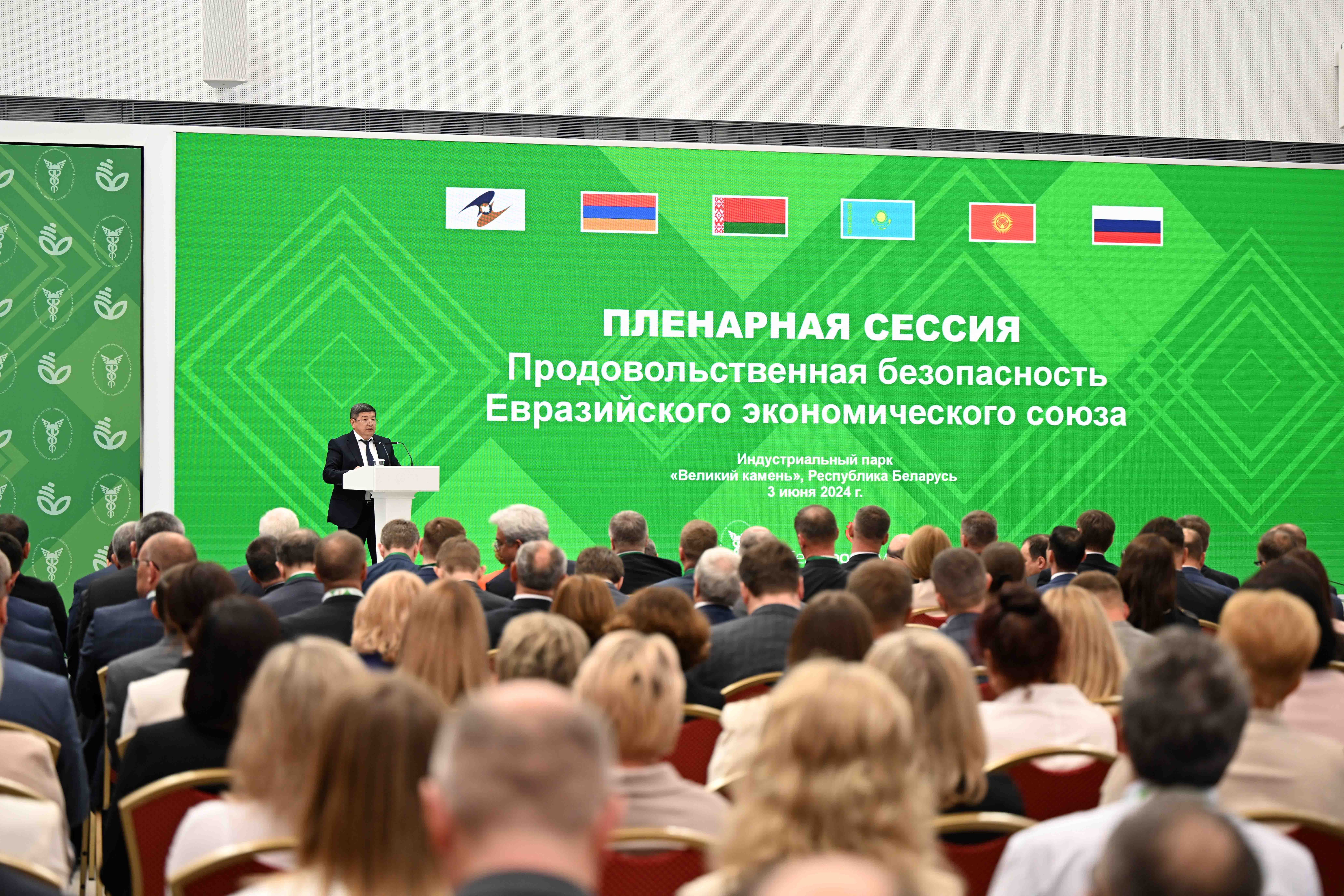 Азык-түлүк коопсуздугун камсыз кылуу ЕАЭБдин ишмердүүлүгүнүн артыкчылыктуу багыттарынын бири жана ушул бойдон кала берет. Бул туурасында Кыргыз Республикасынын Министрлер Кабинетинин Төрагасы-Президенттин Администрациясынын Жетекчиси Акылбек Жапаров Беларусь Республикасына жумуш визитинин алкагында, "Белагро-2024" адистештирилген эл аралык көргөзмөсүнүн аянтчасында өткөрүлүп жаткан "Евразия экономикалык бирлигинин азык-түлүк коопсуздугу" пленардык сессиясындагы сөзүндө билдирди.