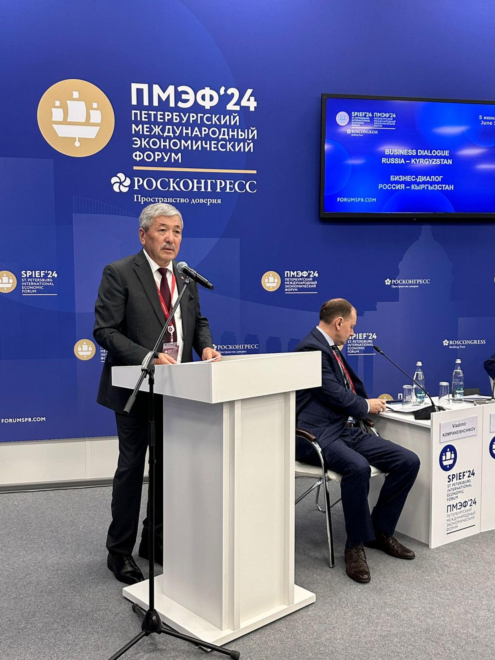 Кыргыз Республикасынын Министрлер Кабинетинин Төрагасынын биринчи орун басары Адылбек Касымалиев 27-Санкт-Петербург эл аралык экономикалык форумунун алкагында «Кыргызстан-Россия» бизнес-диалогуна катышты.