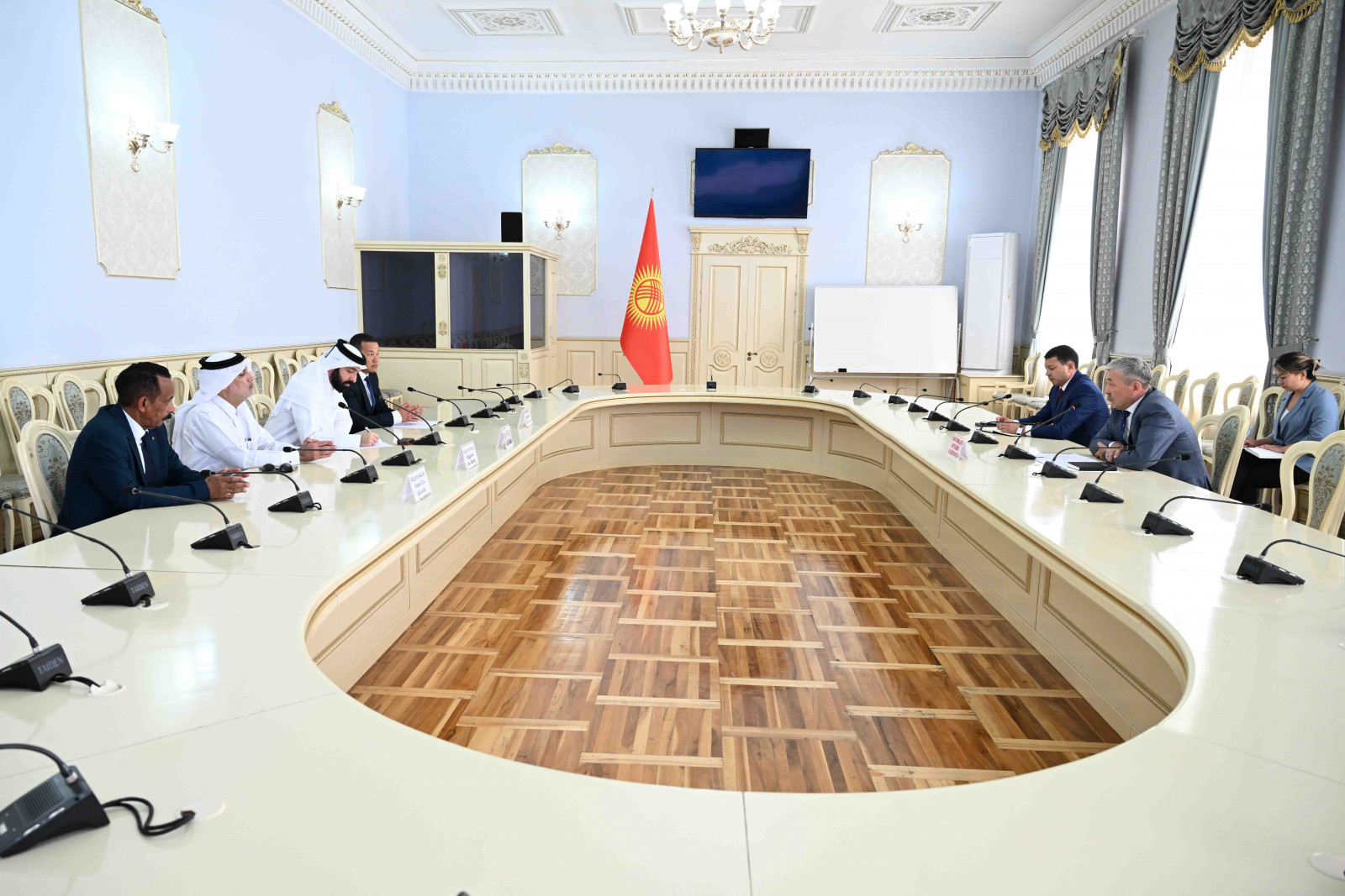 МинКаб Төрагасынын биринчи орун басары Адылбек Касымалиев Катар кайрымдуулук фондунун глобалдык программалар боюнча директору Наваф Абдулла Аль-Хаммади менен жолукту