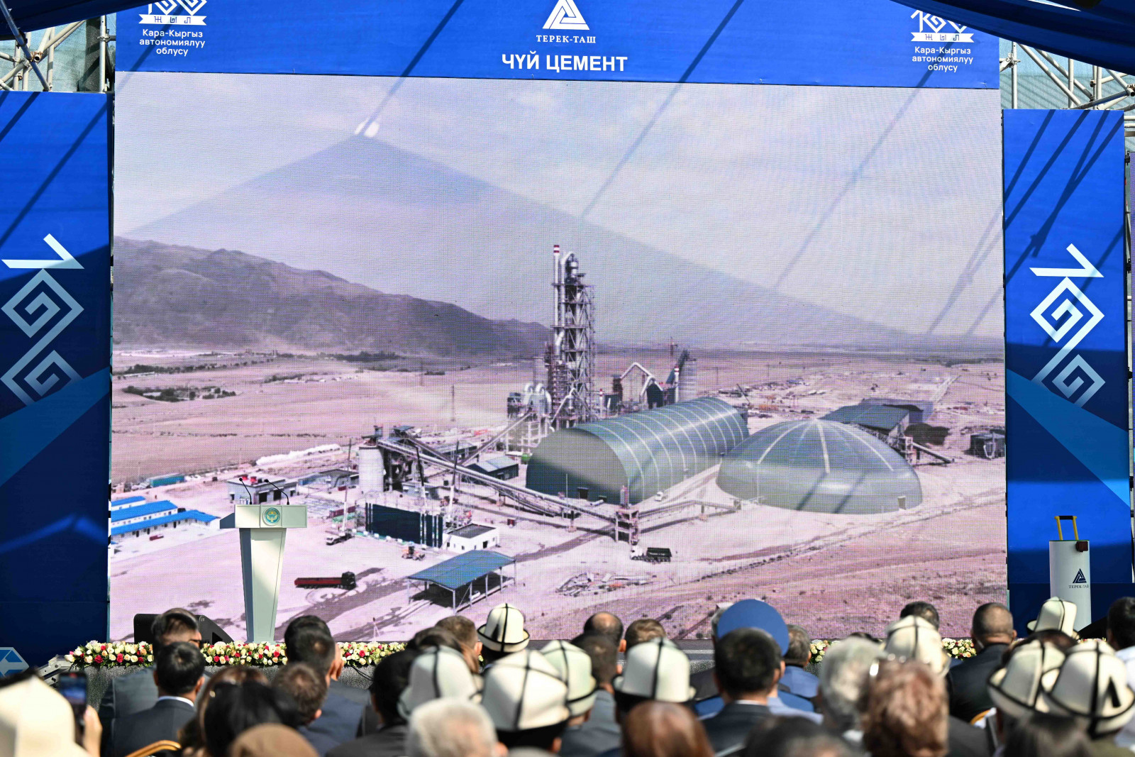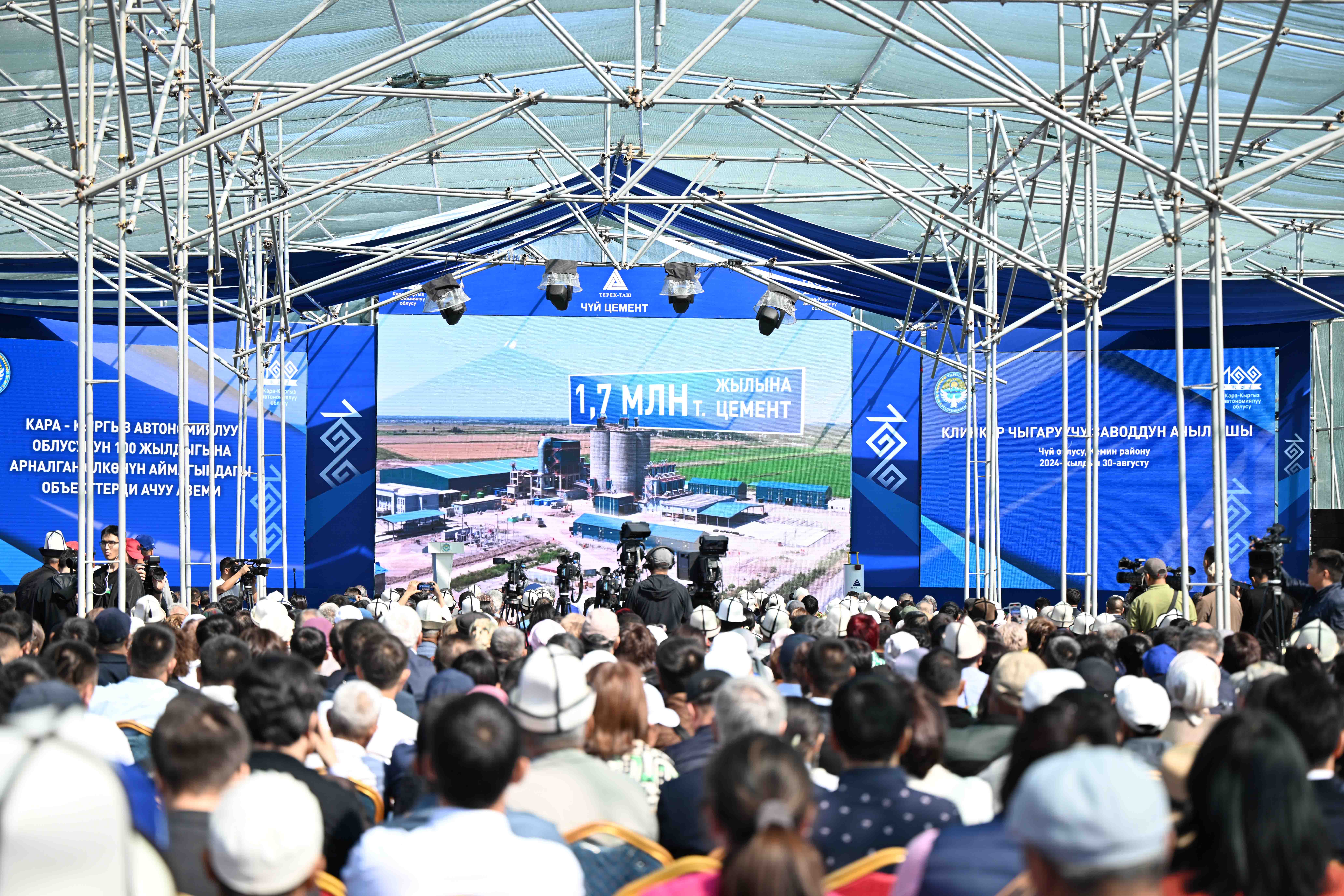 Кыргыз Республикасынын Министрлер Кабинетинин Төрагасы – Кыргыз Республикасынын Президентинин Администрациясынын Жетекчиси Акылбек Жапаров Чүй облусунун Кемин районундагы клинкер чыгаруучу “Терек-Таш” заводунун ачылышына катышты.
