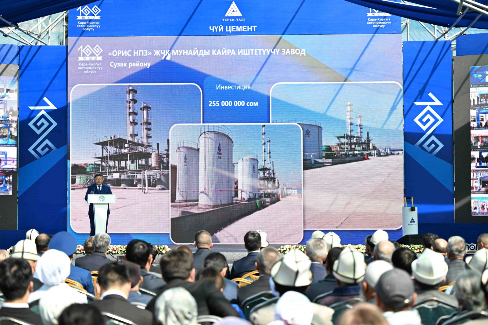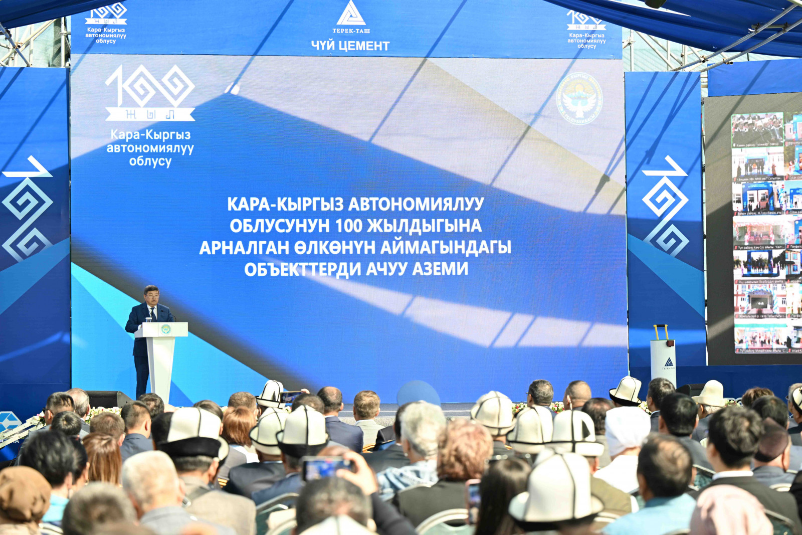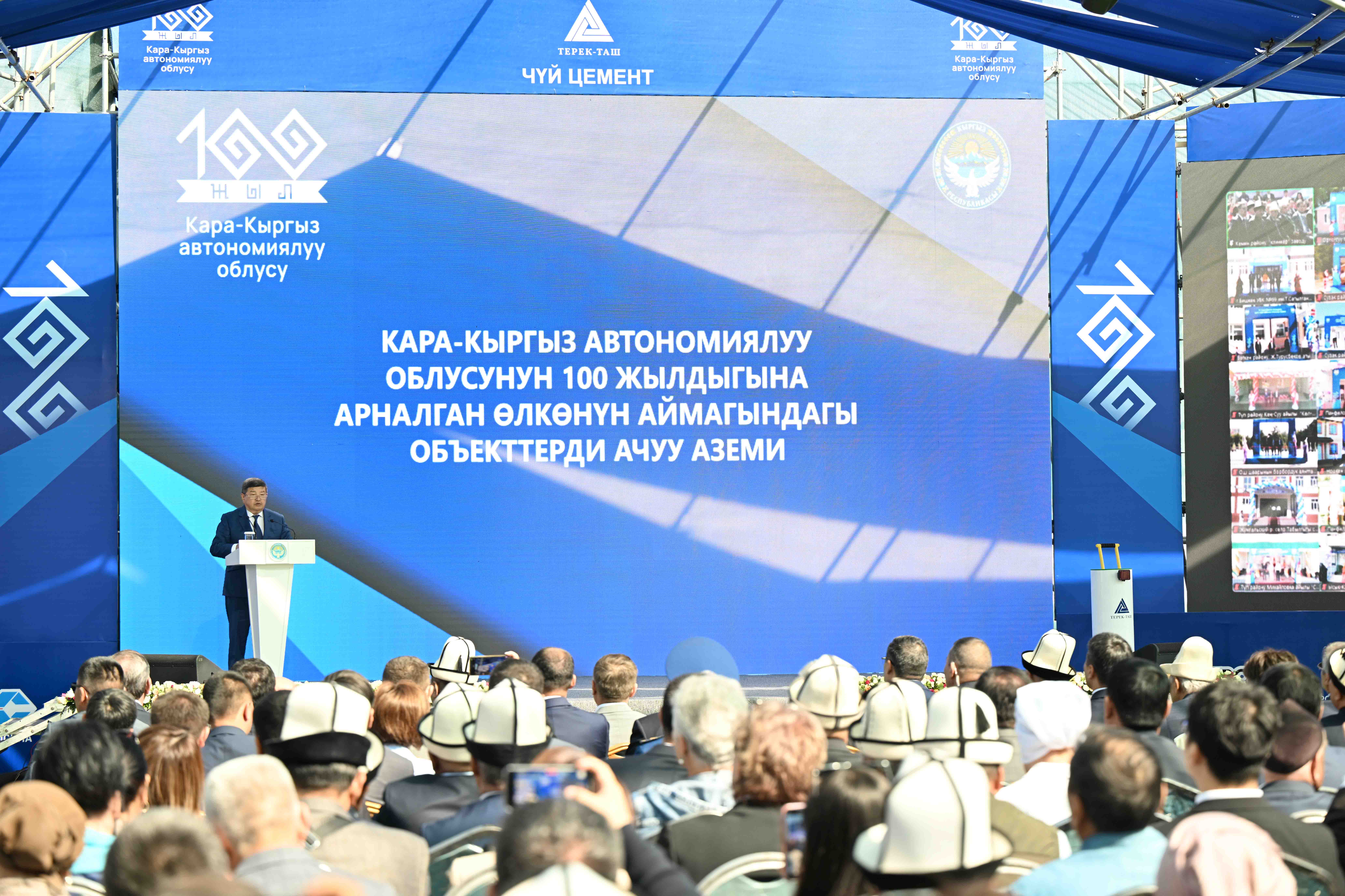 “Терек-Таш” заводунун ачылышы менен бир эле мезгилде өндүрүштүк жана социалдык маанидеги 100 объектти ачып жатабыз. Акыркы үч жыл олуттуу өзгөрүүлөрдүн жана жетишкендиктердин мезгили болду, Президенттин жана анын командасынын аракеттери реалдуу натыйжаларды көрсөтүп жатканын көрүп жатабыз – элдин турмушу жакшырап жаңы жумуш орундары түзүлүп жатат. Глобалдык кризиске карабастан, биз туруктуулукту жана өсүштү көрсөтүү менен алдыга ишенимдүү кадам шилтеп жатабыз”, – деп кошумчалады ал.