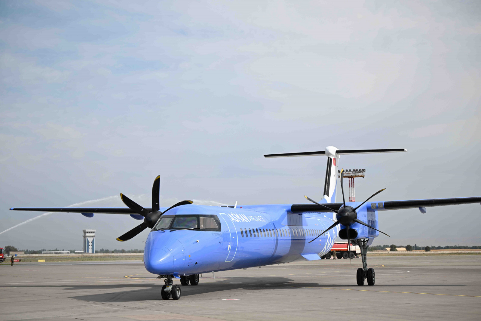 “Манас” эл аралык аэропорту” ачык акционердик коомунун “Асман аба жолдору” авиакомпаниясы үчүн сатылып алынган Dash 8 Q400 үлгүсүндөгү биринчи самолет Кыргыз Республикасына келди.