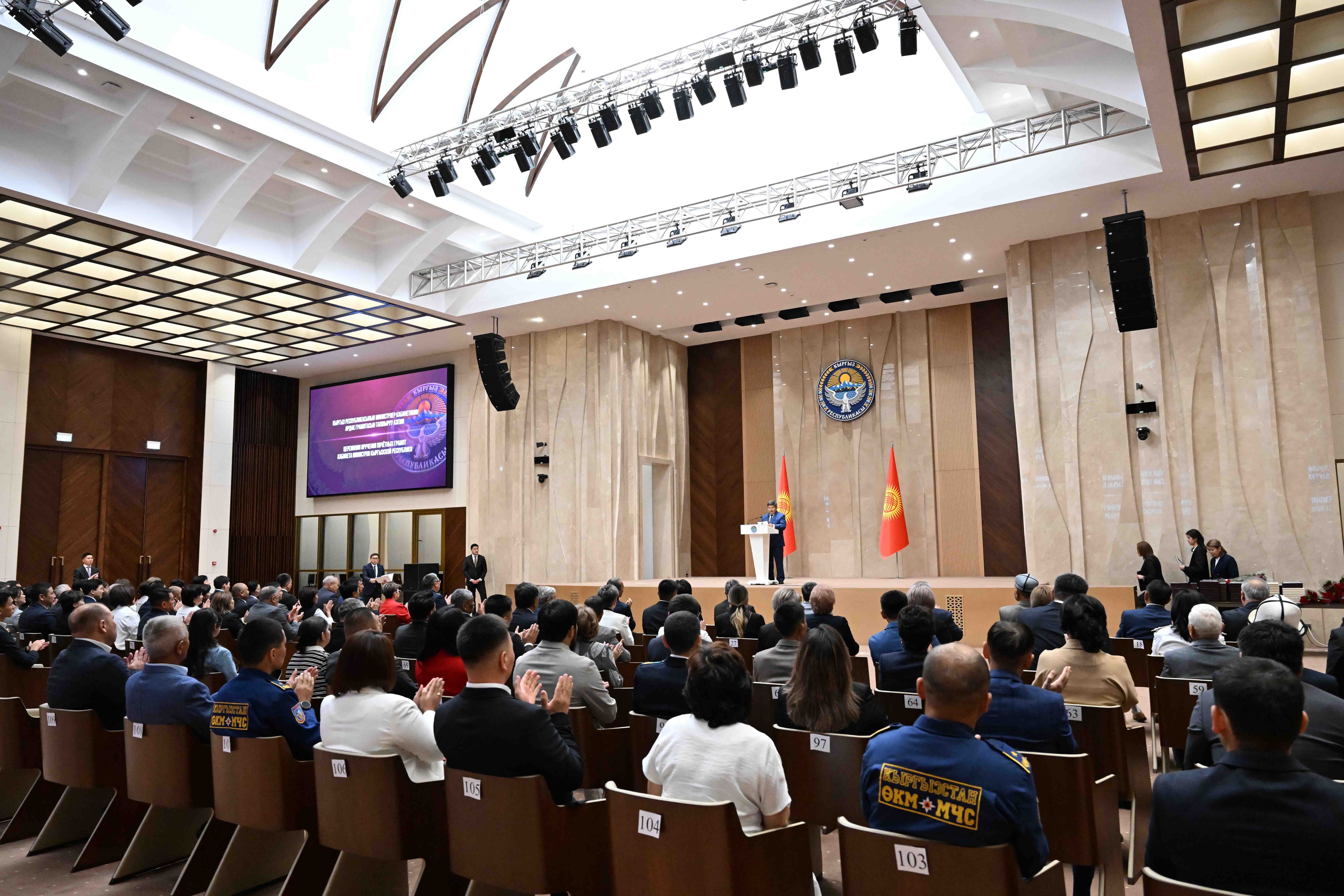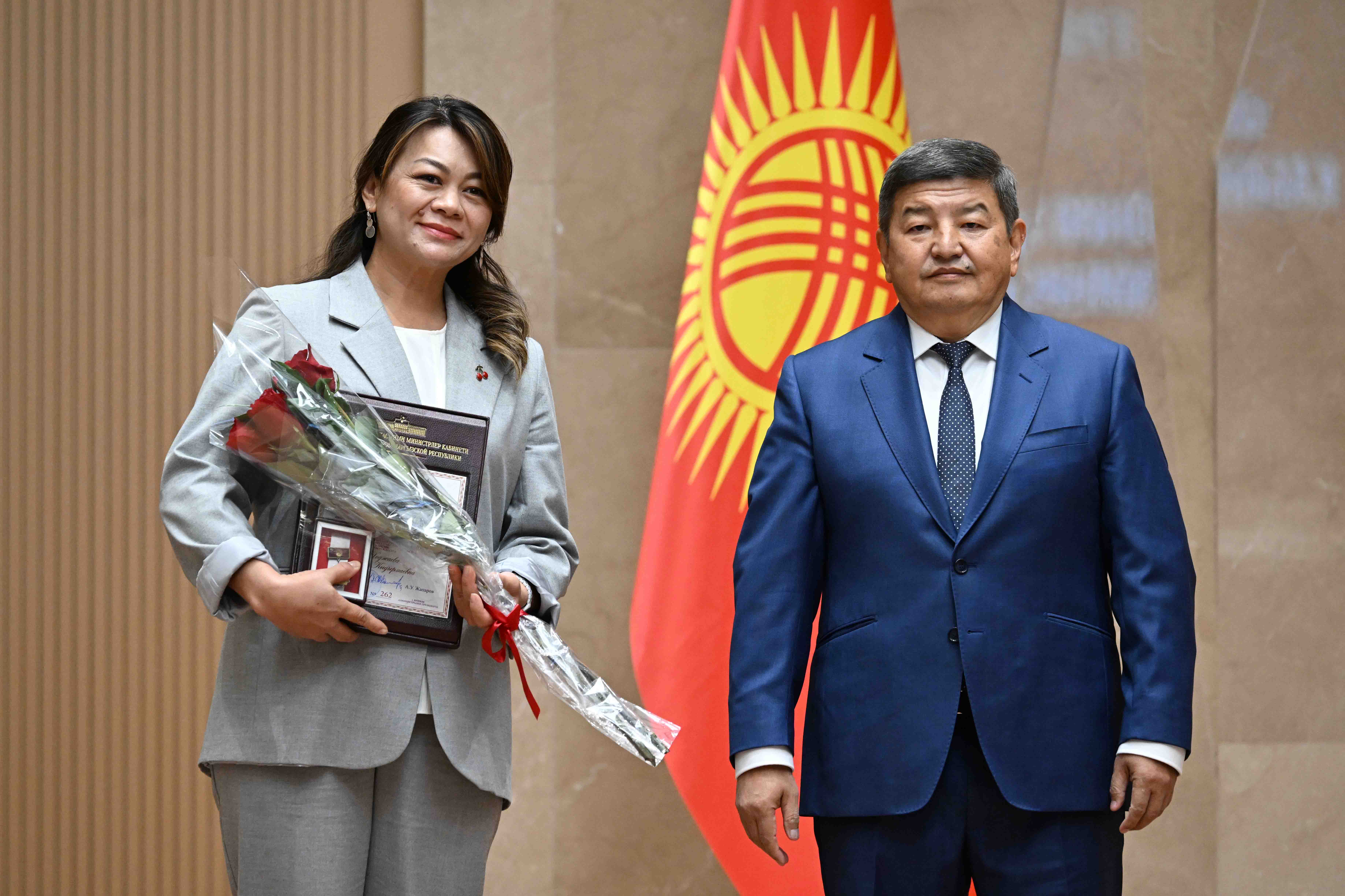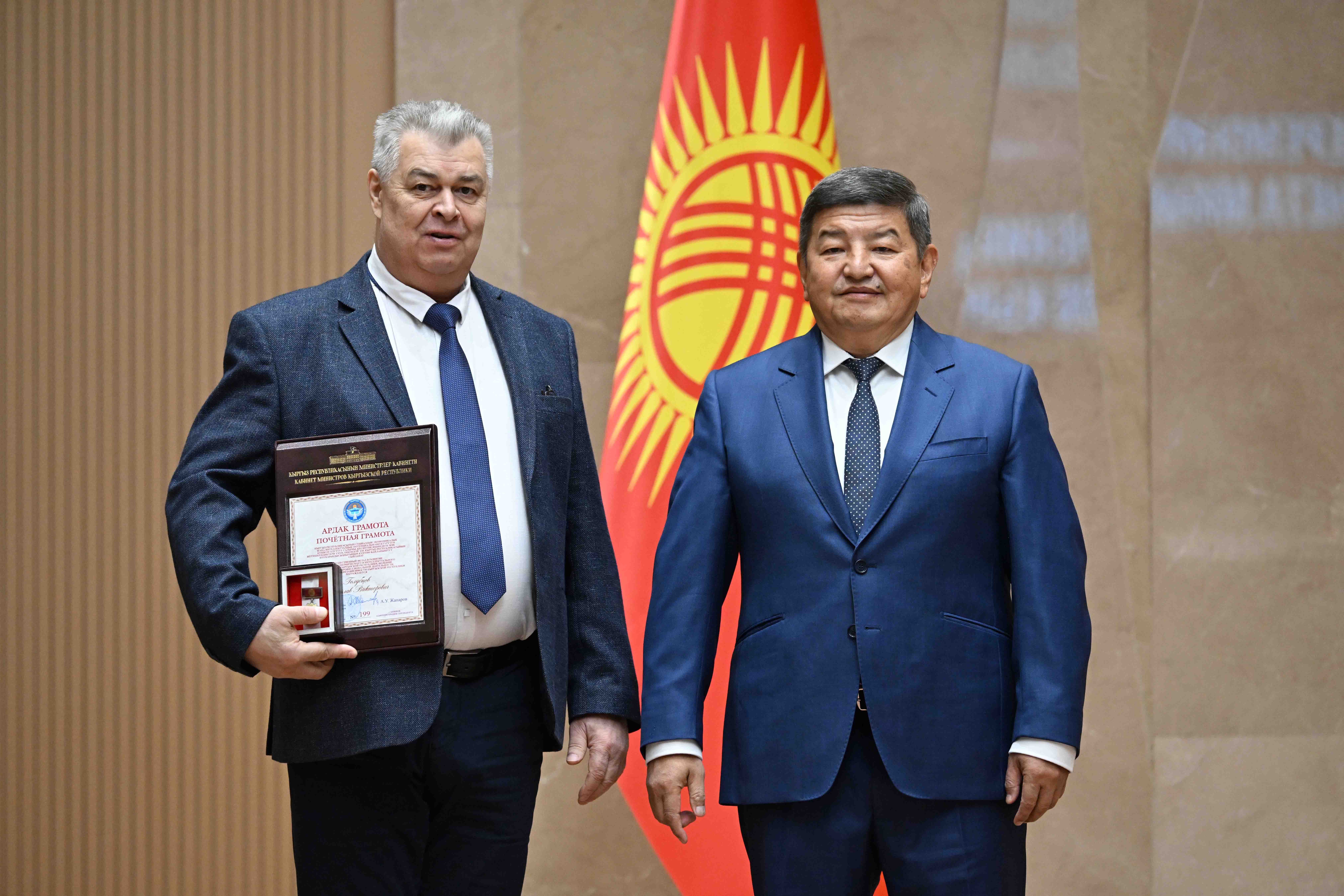 Кыргыз Республикасынын Министрлер Кабинетинин Төрагасы – Кыргыз Республикасынын Администрациясынын Жетекчиси Акылбек Жапаров экономиканы өнүктүрүүгө кошкон зор салымы, интеллектуалдык потенциалы бийик жана өз кесиптик чөйрөсүндө ийгилик жараткан, профессионалдык ишмердүүлүгүндө өзгөчөлөнгөн жарандарга Кыргыз Республикасынын Министрлер Кабинетинин Ардак грамоталарын тапшырды.