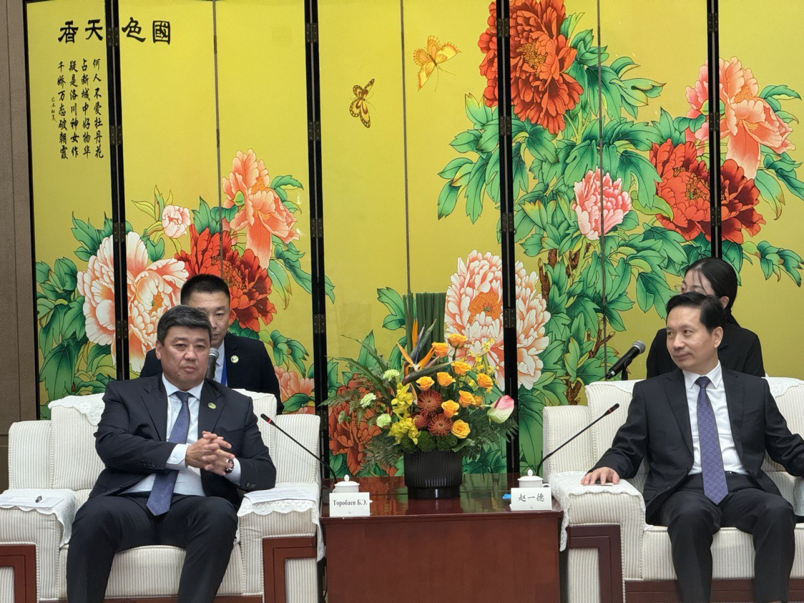 Сиань шаарында Кыргыз Республикасынын Министрлер Кабинетинин Төрагасынын орун басары — Суу ресурстары, айыл чарба жана кайра иштетүү өнөр жайы министри Бакыт Төрөбаев Кытай Эл Республикасынын Шэньси провинциясынын Коммунисттик партиясынын Партиялык комитетинин Катчысы Чжао Идэ менен жолукту.