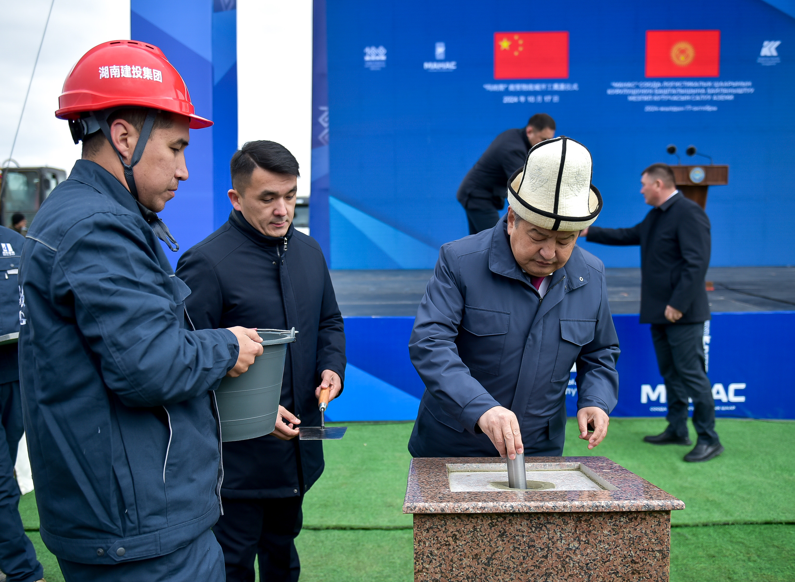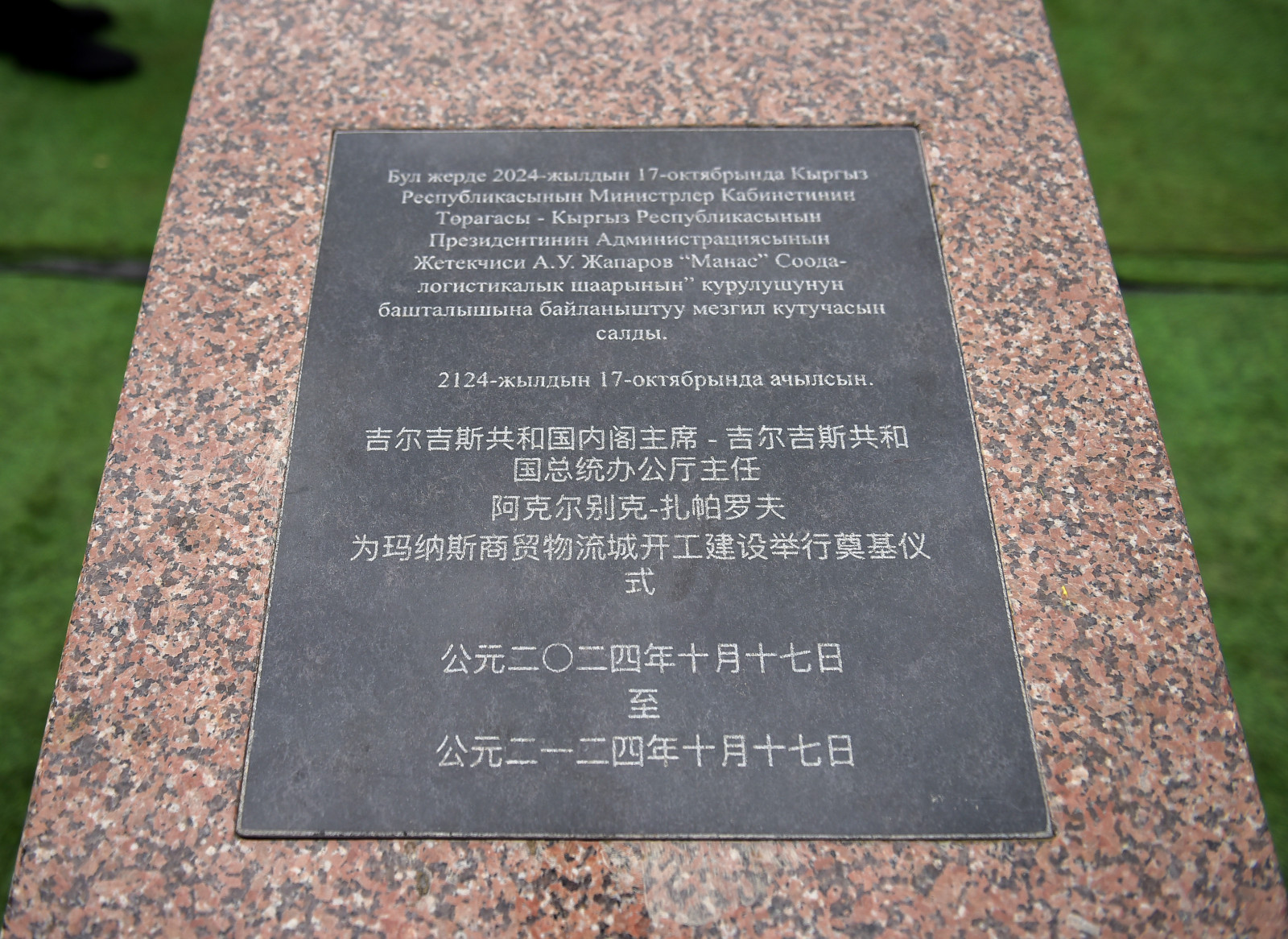 Кыргыз Республикасынын Министрлер Кабинетинин Төрагасы - Кыргыз Республикасынын Президентинин Администрациясынын Жетекчиси Акылбек Жапаров “Манас” соода-логистикалык шаары” инвестициялык курулуш долбоорун ишке ашыруунун курулушуна капсула салуу аземине катышты.